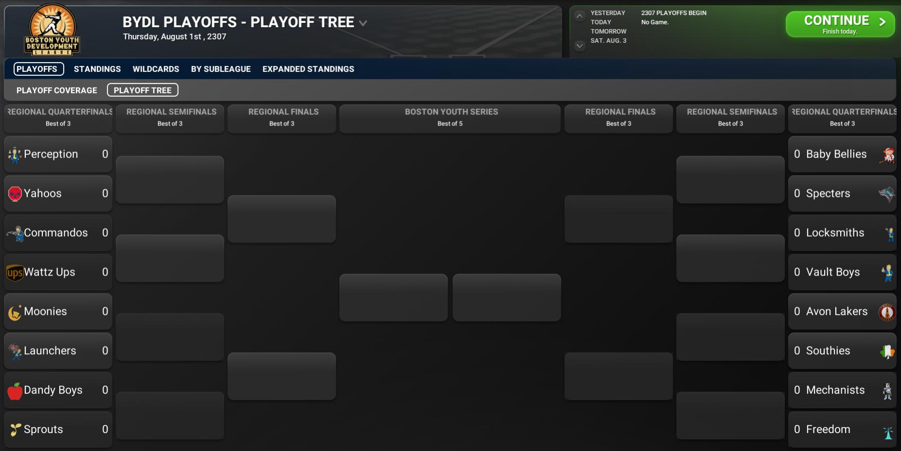 BNN Report News from the CBO, MML, BMU, GBRL, and Youth Leagues by Nat Wright-Kawolski 1 August 2307 The August Super Post, Part 2 BYDL Analysis The 2307 BYDL has concluded, and 16 teams--eight division winners and eight wildcards--get to move on to the playoffs for the rights to win the 8th Boston Youth Series. Division winners and wildcards are: North Region Franklin - Beantown Sprouts #2 Emerson - Wattz Ups #4 Fuller - Kendall Hospital Yahoos #1 Revere - Saugus Launchers #3 #5 - Stoneham Commandos #6 - South Charles Bank Moonies #7 - Covenant Dandy Boys #8 - Danvers Perception South Region Adams - Vault 95 Vault Boys #4 Alcott - Castle Freedom #2 Morse - Andrew Station Southies #3 Attucks - Spectacle Island Specters #1 #5 - Weymouth Locksmiths #6 - Avon Lakers #7 - Hester Mechanists #8 - Boston Common Baby Bellies Last season's Boston Youth Series saw the Specters defeating the Sprouts. Both teams are again high seeds this season, meaning there is a chance for the first-ever rematch since the BYDL became a part of the CBO. Spectacle Island is the only team to have won two championships in this format. Two season records were broken in 2307 with SP Harry Baines of the Specters tying the season record for pitching wins (15). Also, four Danvers players tied the regular season record for games played (78). The Perception played a 78th game due to tiebreakers in the regular season. The Perception defeated the Lynn Gamers to earn the 8th seed after they fell to the Covenant Dandy Boys for the right to the 7th seed. BYDL Players of the Month NR Hitter - Naga Arakaki put together a good July to earn the North Region Batter of the Month prize. A virtual unknown, he made the most of his chance to prove to 111 officials that he belongs on the big league roster. The Iceboys right fielder posted a .529 batting average with 9 home runs, 28 RBIs and 19 runs scored. A look at his season totals shows Arakaki with 29 home runs, .431 BA, .507 OBP, 85 RBIs and 68 runs scored. SR Hitter - Even though he is a newcomer to Boston Youth Development League, Innis Sark put up some good numbers in July and earned the SR Batter of the Month award. He was one of Spectacle Island's offensive leaders with a .361 average in 28 games. He also racked up 17 home runs, 49 RBIs, and 35 runs scored. For the season Sark is batting .359 with 99 hits and 28 home runs. He has scored 70 times and batted in 93. NR Pitcher - Last month was a very good one for Sluggo Pyne of Beantown. So good that he has been picked as the Pitcher of the Month in the North Region. Pyne throttled league hitters the entire month, completing July with an impressive 4-2 mark and a 3.89 ERA in 6 starts with 66 strikeouts in 44 innings. This season Pyne has a 12-3 mark in 19 starts with a 3.04 ERA. He has given up 108 hits in 133.1 innings, struck out 194 and issued 50 walks. Opposing clubs have compiled a .220 batting average against him. SR Pitcher - Question: Who was the #1 pitcher in the South Region in July? Answer: That would be Clubhouse Treelover of the Weymouth Locksmiths. He excelled with a 5-0 mark and a 1.46 ERA in 7 starts, tossed 55.1 innings, fanned 73 and held opposing teams to a .213 average. That's exactly why the South Region scribes voted him the Pitcher of the Month. In pitching stats this season Treelover has rung up 14 wins and 1 loss in 20 games. He has an ERA of 2.33 and has fanned 202 batters in 150.1 innings. SCYL Analysis The SCYL regular season concluded on July 19 with eight teams going to the playoffs. In the CCL, the Truro Hatchlings and Harwich Fishheads won their divisions to clinch the top two seeds, while the Provincetown Land Pirates and Sandwich Screamers took the final two seeds in the playoffs. In the PL, the Woodlawn Red Clay and Brown Bubblers won their divisions, while the Pawtucket Paw Sox and Freeplat Wicked Goods clinched wildcard spots. The Bubblers won their division with just a 34-36 record. In the first round of the playoffs, the Screamers upset the Hatchlings, 2 games to 1 (2-1), and the Fishheads swept the Land Pirates 2-0. In the Providence League, Woodlawn swept the Wicked Goods 2-0, and the Bubblers edged the Paw Sox 2-1. In the league finals, Sandwich overcame their tiebreaker loss to Harwich, defeating them 2-0 to move on to the Southern Commonwealth Series. The Red Clay then got another sweep, this time over Brown 2-0. The Sandwich Screamers and Woodlawn Red Clay are now meeting in the Southern Commonwealth Series where the Red Clay have a 2-0 advantage in the best-of-five series. SCYL Players of the Month CCL Hitter - Silver Workman made his presence known as one of the best young stars in the Cape Cod League this past month. The Wareham Comets right fielder shined through the month of July and has won the Batter of the Month award. The 17-year-old hit .381 with 4 home runs, 11 RBIs and 21 runs scored. Presently Workman is batting .290 with 10 home runs and 41 RBIs. He has played in 69 games and scored 53 times. PL Hitter - When Tome Humphries stepped up to the plate in July he did it with confidence, and today he was honored with the Providence League Batter of the Month award. The young Woodlawn second baseman posted a .523 batting average with 8 home runs, 36 RBIs and scored 20 runs. Humphries also worked pitchers for 6 walks to post a .569 on-base percentage. Currently Humphries is batting .462 with 20 home runs, 91 RBIs and 75 runs scored. CCL Pitcher - Sarthis Idren of Harwich excelled on the mound in July with a 3-0 record and was named the Pitcher of the Month in the Cape Cod League. Idren restricted opposing batters to 19 base hits and a .153 batting average. He rang up 50 strikeouts in 36 innings of work, surrendered 8 walks, and fashioned a 2.25 ERA. This year Idren has worked 137 innings with 175 strikeouts en route to a 8-6 record and 3.48 ERA. PL Pitcher - The premier pitcher this past month in the Providence League was Hitman Medicman of the Freeplat Wicked Goods. He was one might
