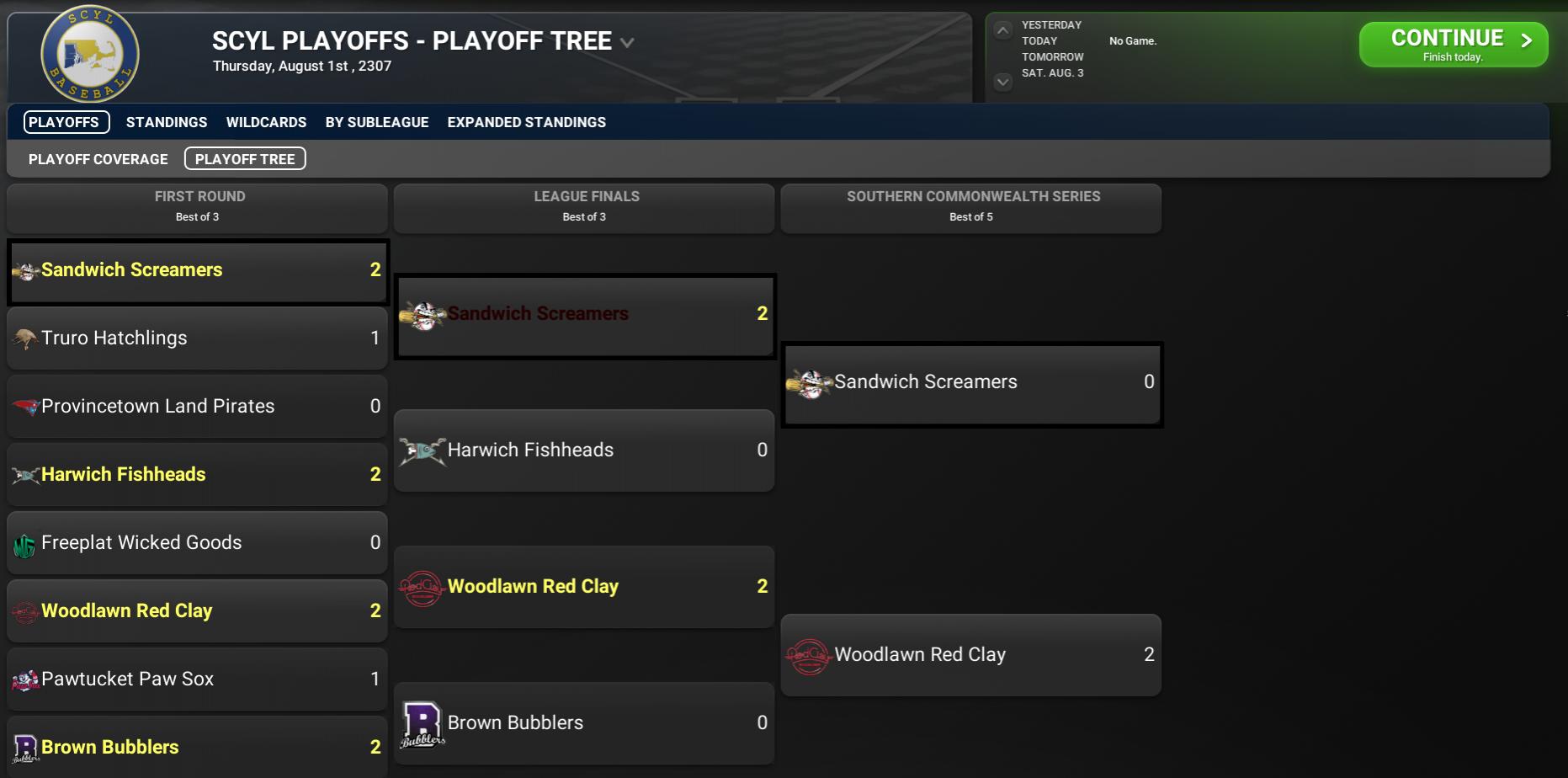 BNN Report News from the CBO, MML, BMU, GBRL, and Youth Leagues by Nat Wright-Kawolski 1 August 2307 The August Super Post, Part 2 BYDL Analysis The 2307 BYDL has concluded, and 16 teams--eight division winners and eight wildcards--get to move on to the playoffs for the rights to win the 8th Boston Youth Series. Division winners and wildcards are: North Region Franklin - Beantown Sprouts #2 Emerson - Wattz Ups #4 Fuller - Kendall Hospital Yahoos #1 Revere - Saugus Launchers #3 #5 - Stoneham Commandos #6 - South Charles Bank Moonies #7 - Covenant Dandy Boys #8 - Danvers Perception South Region Adams - Vault 95 Vault Boys #4 Alcott - Castle Freedom #2 Morse - Andrew Station Southies #3 Attucks - Spectacle Island Specters #1 #5 - Weymouth Locksmiths #6 - Avon Lakers #7 - Hester Mechanists #8 - Boston Common Baby Bellies Last season's Boston Youth Series saw the Specters defeating the Sprouts. Both teams are again high seeds this season, meaning there is a chance for the first-ever rematch since the BYDL became a part of the CBO. Spectacle Island is the only team to have won two championships in this format. Two season records were broken in 2307 with SP Harry Baines of the Specters tying the season record for pitching wins (15). Also, four Danvers players tied the regular season record for games played (78). The Perception played a 78th game due to tiebreakers in the regular season. The Perception defeated the Lynn Gamers to earn the 8th seed after they fell to the Covenant Dandy Boys for the right to the 7th seed. BYDL Players of the Month NR Hitter - Naga Arakaki put together a good July to earn the North Region Batter of the Month prize. A virtual unknown, he made the most of his chance to prove to 111 officials that he belongs on the big league roster. The Iceboys right fielder posted a .529 batting average with 9 home runs, 28 RBIs and 19 runs scored. A look at his season totals shows Arakaki with 29 home runs, .431 BA, .507 OBP, 85 RBIs and 68 runs scored. SR Hitter - Even though he is a newcomer to Boston Youth Development League, Innis Sark put up some good numbers in July and earned the SR Batter of the Month award. He was one of Spectacle Island's offensive leaders with a .361 average in 28 games. He also racked up 17 home runs, 49 RBIs, and 35 runs scored. For the season Sark is batting .359 with 99 hits and 28 home runs. He has scored 70 times and batted in 93. NR Pitcher - Last month was a very good one for Sluggo Pyne of Beantown. So good that he has been picked as the Pitcher of the Month in the North Region. Pyne throttled league hitters the entire month, completing July with an impressive 4-2 mark and a 3.89 ERA in 6 starts with 66 strikeouts in 44 innings. This season Pyne has a 12-3 mark in 19 starts with a 3.04 ERA. He has given up 108 hits in 133.1 innings, struck out 194 and issued 50 walks. Opposing clubs have compiled a .220 batting average against him. SR Pitcher - Question: Who was the #1 pitcher in the South Region in July? Answer: That would be Clubhouse Treelover of the Weymouth Locksmiths. He excelled with a 5-0 mark and a 1.46 ERA in 7 starts, tossed 55.1 innings, fanned 73 and held opposing teams to a .213 average. That's exactly why the South Region scribes voted him the Pitcher of the Month. In pitching stats this season Treelover has rung up 14 wins and 1 loss in 20 games. He has an ERA of 2.33 and has fanned 202 batters in 150.1 innings. SCYL Analysis The SCYL regular season concluded on July 19 with eight teams going to the playoffs. In the CCL, the Truro Hatchlings and Harwich Fishheads won their divisions to clinch the top two seeds, while the Provincetown Land Pirates and Sandwich Screamers took the final two seeds in the playoffs. In the PL, the Woodlawn Red Clay and Brown Bubblers won their divisions, while the Pawtucket Paw Sox and Freeplat Wicked Goods clinched wildcard spots. The Bubblers won their division with just a 34-36 record. In the first round of the playoffs, the Screamers upset the Hatchlings, 2 games to 1 (2-1), and the Fishheads swept the Land Pirates 2-0. In the Providence League, Woodlawn swept the Wicked Goods 2-0, and the Bubblers edged the Paw Sox 2-1. In the league finals, Sandwich overcame their tiebreaker loss to Harwich, defeating them 2-0 to move on to the Southern Commonwealth Series. The Red Clay then got another sweep, this time over Brown 2-0. The Sandwich Screamers and Woodlawn Red Clay are now meeting in the Southern Commonwealth Series where the Red Clay have a 2-0 advantage in the best-of-five series. SCYL Players of the Month CCL Hitter - Silver Workman made his presence known as one of the best young stars in the Cape Cod League this past month. The Wareham Comets right fielder shined through the month of July and has won the Batter of the Month award. The 17-year-old hit .381 with 4 home runs, 11 RBIs and 21 runs scored. Presently Workman is batting .290 with 10 home runs and 41 RBIs. He has played in 69 games and scored 53 times. PL Hitter - When Tome Humphries stepped up to the plate in July he did it with confidence, and today he was honored with the Providence League Batter of the Month award. The young Woodlawn second baseman posted a .523 batting average with 8 home runs, 36 RBIs and scored 20 runs. Humphries also worked pitchers for 6 walks to post a .569 on-base percentage. Currently Humphries is batting .462 with 20 home runs, 91 RBIs and 75 runs scored. CCL Pitcher - Sarthis Idren of Harwich excelled on the mound in July with a 3-0 record and was named the Pitcher of the Month in the Cape Cod League. Idren restricted opposing batters to 19 base hits and a .153 batting average. He rang up 50 strikeouts in 36 innings of work, surrendered 8 walks, and fashioned a 2.25 ERA. This year Idren has worked 137 innings with 175 strikeouts en route to a 8-6 record and 3.48 ERA. PL Pitcher - The premier pitcher this past month in the Providence League was Hitman Medicman of the Freeplat Wicked Goods. He was one might