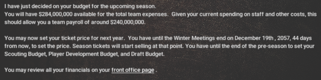 2057 regular season update ...