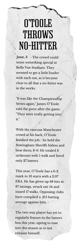 The series opened in Manchester’s Belle Vue Stadium to a sell-out crowd, over 25,000 witnessed the Elephants run rampant. You’d be forgiven for thinking the Manchester boys were going to runaway with the series, as they scored in every inning they took to the plate, except for the seventh. Every starter batted in one run in an incredible offensive display, led by Jimmy O’Toole who went 3 for 5 with 3 RBIs and Daniel Williamson likewise 3 for 5, he batted in 5 total runs. The Capitals offensive dried up after scoring 1 in the first, they would manage to shake O’Toole for 4 in the eighth, some damage limitation. The game ended 5-16, the Elephants taking game 1 comfortably. In game 2 and the Capitals dusted themselves down and went out to prove they were in the Championship Series to compete. After getting 1 run on the board in the second, Capitals rookie pitcher Evan Horne kept the Elephants shut down until the fourth, when deep drive into centre field from Teague Doyle got him a triple with 1 already on base. However this was all the Elephants offense could muster, the Capitals retook the lead in the fifth and didn’t look back. Earning an 8-2 victory and tying up the series. We moved to Capital Field for game 3, again the Croydon pitching tying up the Elephants. 42-year old veteran Nicky Parry threw 6 solid innings, allowing only 2 runs and 6 hits, fanning 6 Manchester hitters, Sean Anderson in relief threw the final 3, allowing only 1 hit and striking out another 3. All whilst their offense played their part putting up 3 in the second and another run in the fourth and fifth. Aiden Iles leading the offense with 3 hits in 4 Abs, batting in 2 of his team’s 5 runs. 5-2 for Croydon Capitals who take the lead in the series. Game 4 was an all-time classic for the purest that savours a pitching dual. Both starters threw complete games, O’Toole hurling 120 pitches over his 8 innings, giving up 5 hits and 2 runs, whilst striking out 7. His rival Billy Walsh throwing 9 innings, 100 pitches, giving up only 4 hits and 1 run, he fanned 2 Manchester batters. A rare lapse from O’Toole was enough for the Capitals to take the initiative, doubles from Iles and Dick Davies, followed by a single from Thomas O’Hanrahan brought in the Croydon club 2 runs. Enough for them to secure a 2-1 victory and increase their lead in the series, making it 3-1. Game 5, the opportunity for the Capitals to secure revenge, the Elephants’ last chance to keep this series alive. Manchester struck first with 2 in the second, a back and fourth game, with 1 for Croydon in the bottom of the fourth, tied at 3-3 by the time we got to the sixth, when the Capitals third baseman Ryan Rainey would hit a ferocious home run with 1 on base, to take the lead. Triple crown winner Adonis Millar of the Elephants, finally made his presence felt in the series, responding with a two-run home run of his own in the seventh, it was again tied up… Croydon outfielder Iles and second baseman Davies would once again combine to give their team the go-ahead run in immediate response in the bottom of the seventh, for reliever Alan Murphy be called to arms, he shut down the Elephants offense for a 6-5 Capitals victory. The Croydon Capitals win the series 4 to 1. The Capitals are champions of Britain. Player of the Series, Aiden Iles, Croydon, AB 22, H 11, HR 1, RBI 7, .500 AVG. ![]() Progress League Championship Series won by Southport Cylones, 4 games to 3 against the Brighton Sunshines. Alliance League was won by the Stockport Hatters with a 54 - 31 record. The league was decided by a tie-breaker game against the Blackburn Olympics. The Hatters came back from behind in the bottom 9th, scoring 3 runs, to win the game 5-4 and the league in the most dramatic fashion. The Stirling Highlanders swept the Dundee Lillies in 4 games to win the Scottish Championship. |