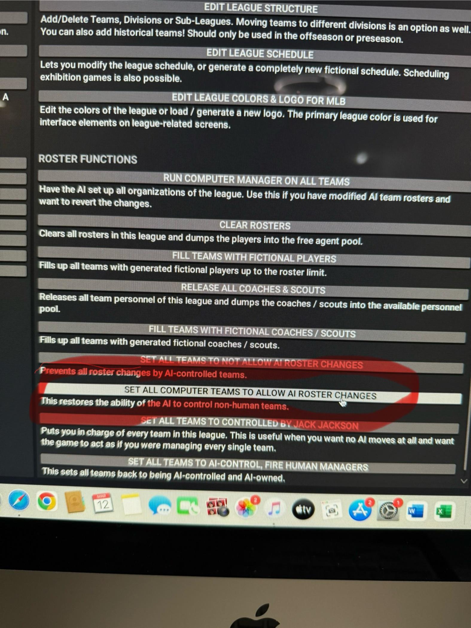*** Before you start your season please remember to place all CPU teams to allow moves!!! It’s under settings *** Settings->League Settings->Set all computer teams to allow AI roster changes Where is this exactly? I found League Settings, but is it under Functions? What is this called exactly? Maybe a pic? Is this save in Commissioner Mode? How do I fix some player assignments? |