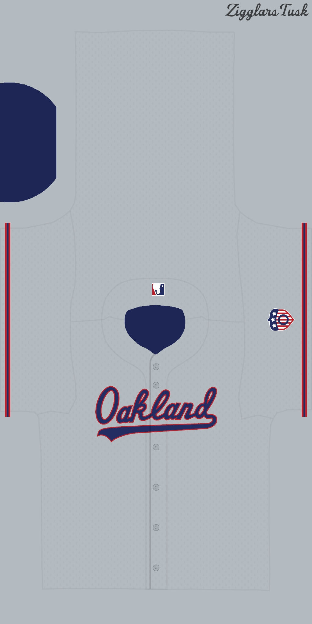 A revival of the Pacific Coast Lague's Oakland Oaks, this set is based on MiLB's Hometown Collection. Included are home whites and road grays with blue and red alternate tops. The Giants would probably never let this happen given their territorial rights, but if the league does centralize teams' TV rights in 2028 this would be more palatable to other teams and a realistic possibility.