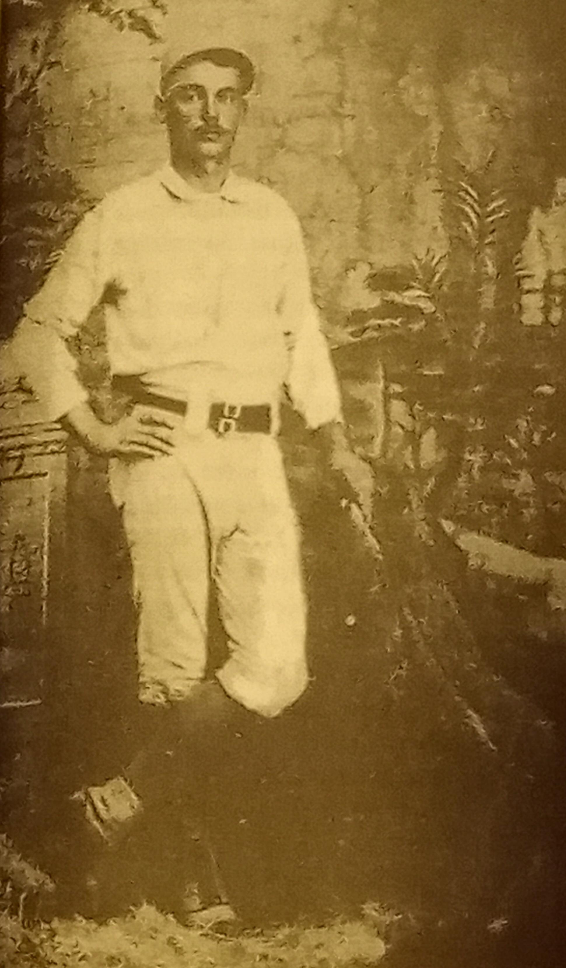 William C. Roush, father of Hall of Famer Edd Roush with a semi-pro baseball team sometime in the 1880s.
