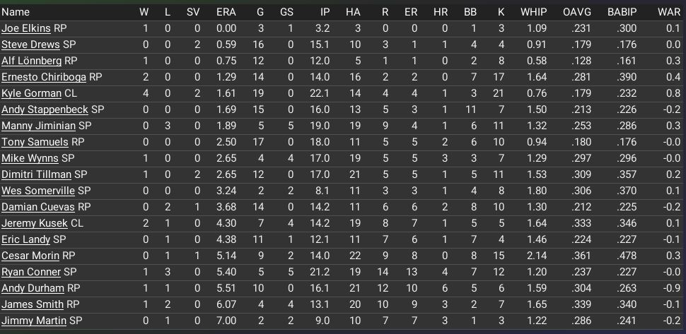 SP #1 Wes Somerville (Age 18 T-R $52,000) Spring Record 0-0 3.24 ERA 8.1IP A lot of pressure on this kid and maybe more than we should put on him. He had somehow wormed his way into being a free agent and well our scout and the Baseball America (OSA) loved him. SP #2 Mike Wynns (Age 24 T-R $47,000) Spring Record 1-0 2.65 ERA 17.0 IP Another of our 3 starting pitcher acquisitions. He wanted more money but nobody was offering so we grabbed him and paid about $13,000 less than his initial request. SP #3 Jimmy Martin (Age 26 T-L $60,000) Spring Record 0-1 7.00 ERA 9IP The final of our 3 pitching acquisitions in the spring. Martin is a needed lefty but signed late and was rocked in his first outing. Hopefully he will bounce back as he starts game #3 of the season against our other PNW rivals Portland. SP #4 Ryan Conner (Age 26 T-R $24,000) Spring Record 1-3 5.40 ERA 21.2 IP When I arrived in Tempe for spring training, Conner was at the top of our rotation. Now you see why we were desperate to sign some pitchers. SP #5 Manny “Schelley” Jiminian (Age 22T-R $22,000) Spring Record 0-3 1.89 ERA 19IP Now despite his record, “Schelley” actually won a spot in the starting five with a stellar spring. The question will be can he keep it up, and if he doesn’t who will start games when we need a 5th SP Bullpen CL - Kyle Gorman (Age 28 T-R $25,000) Spring Record 4-0 2 saves 1.61 ERA 22.1IP Gorman looks like a guy we can count on to finish off games, one way or another. Hopefully its the right way. RP James Smith (Age 30 T-R $24,000) Spring Record 1-2 6.07 ERA 13.1 IP Smith was one of our SP’s in the Spring and as you can see he lost that #5 spot based on his performance. We are hoping he finds his groove in the pen. Positive note he only walked 2 batters in spring ball. RP Cesar “Campy” Morin (Age 25 T-L $16,000) Spring Record 0-1 1 save 5.14 ERA 2GS 14IP - Let’s just say that Morin didn’t impress and was almost dealt if anyone would offer something more than a cup of coffee for him. But we need a lefty in the pen, so he serves that role as 1 of 2. RP Damian “Gentle Willie” Cuevas (Age 26 T-L $18,000) Spring Record 0-2 1 save 3.68 ERA 14 IP - Another lefty we kept around despite his 8/14 BB/IP ratio. Hanging on by a thread. RP Alf Lonnberg (Age 36 T-R $25,000) Spring Record 1-0 0.75 ERA 12 IP Alf wasn’t expected to make it to the opening day roster, but a dominant spring helped him welcome his 36th with a trip to Canada for Opening Day. Position Players - bold denotes starters C Adrian Pardo (Age 31 B-R $33,000) Spring Stats 132/281/432 0-3 Pardo made the Opening Day roster because 1.) He’s better than his backup and 2.) We have nobody else in the organization that can catch at the big league level. Pardo needs to impress early because if we are in a playoff battle before the deadline, this will likely be the first position we are looking for. C Manny Salazar (Age 24 B-R $20,000) Spring Stats 236/271/598 1-7 Based on spring results Salazar should probably be starting, but Manager Wilde likes Pardo. Defense is supposed to be Salazar’s calling card (fingers crossed). 1B Rob Reed (Age 26 B-S $26,000) Spring Stats 306/435/907 1-8 Reed gets the call to start at 1B and bat 4th or 3rd (L) depending on the handiness of the opposing starting pitcher. Reed will be looking over his shoulder at 20 year old prospect Marco Diaz who is starting the season at AAA Tacoma. 2B Rafael Marquez (Age 23 B-L $112,000) Spring Stats 244/392/856 2-8 Marquez was our “big” signing this spring from the free agents. Our scouting director took a look at our positional rankings and screamed we needed to find a 2B. SS Adam Weber (Age 24 B-R $34,000) Spring Stats 228/274/520 0-3 Not a great bat, but hopefully a glove that earns his place on the starting 9 3B Algelo Pena (Age 19 B-R $122,000) Spring Stats 271/314/689 1-3 The last of our big signings and this one got into a bidding war. The IFA from Puerto Rico was a hotly chased man this spring and filled one of our last “gapping” holes. Again like Somerville in the rotation we are putting a lot of pressure on a teenager. 2B Chris Benoit (Age 25 B-R $16,000) Spring Stats 237/310/862 3-5 While I almost asked him to change his name, Benoit is versatile playing 1B, 3B and RF along with 2B. He showed some power this spring with 3 home runs. 2B Ernesto Guajardo (Age 26 B-S $19,000) Spring Stats 191/255/531 1-2 There is a reason he is on the bench. Again versatile playing SS,3B and RF along with 2B. Switch hitting is a nice factor but not sure he can hit from either side. LF Carlos Carmona (Age 31 B-R $74,000) Spring Stats 255/328/681 1-5 Apparently Carmona is a “real dirt dog" who is loved by teammates and fans alike. I’ll love him too if he hits! CF Joe Collins (Age 23 B-L $18,000) Spring Stats 286/470/837 0-3 Collins is someone I am cautiously excited about. His slugging in the spring was helped by 4 doubles in his 14 hits and he also stole 12 bases. He is undoubtedly our leadoff hitter. RF Mike McDonald (Age 36 B-L $35,000) Spring Stats 265/333/741 1-6 The elder statesman on the team who we are hoping has at least one more good go in him OF Danny Rivera (Age 32 B-R $32,000) Spring Stats 273/319/751 1-4 Corner OF who can also play 1B which is important because we are starting the season heavy on OF’ers. OF Pete Weinstock (Age 28 B-L $16,000) Spring Stats none Weinstock is a team captain type who was picked up off the scrap heap in the lead up to opening day. He immediately made an impression in the club house and is our team captain on the first day. CF Dan Henderson (Age 30 B-S $23,000) Spring Stats 321/393/903 1-4 Our only qualified backup CF who can play all OF spots. #2 pinch hitter against lefties and top pinch runner RF Carl Jeoffrey (Age 23 B-L $16,000) Spring Stats 321/379/794 1-10 Jeoffrey had an outstanding spring and earned this spot, but truth be told if we can find a better backup utility IF Jeoffrey will likely be in Tacoma. There he co