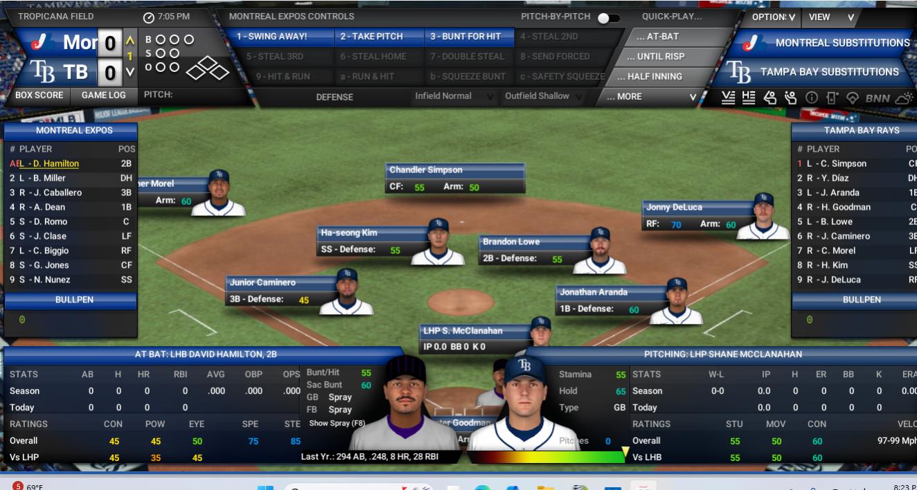 can't get the in game screen how i want it! this is modern 2d. i like the lineups left and right. bottom of screen, hitter and pitcher, there used to be a way to shrink the info, show ratings and pitch count only for the p, for example. how do i do that? I can't paste the pic.