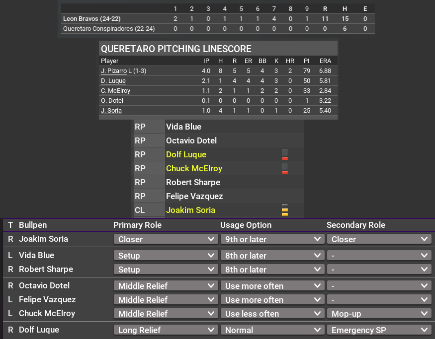 26 versions in, and still this sort of stuff is happening way too often. Numerous lesser pitchers rested and available in my BP, losing a game 10-0, and the AI sends the Closer in.