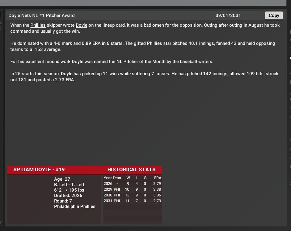 Starting Pitcher of the Month: Logan Gilbert -- The 34-year-old right-hander made six starts going 3-3 with a 2.11 ERA. He pitched a total of 38.1 during which he struck out 40 and had a 1.20 WHIP. Relief Pitcher of the Month: Brett Wichrowski -- The 29-year-old right-hander got into 11 games going 1-0 with a 2.08 ERA. He pitched 13.0 innings, striking out 10 and have a 0.92 WHIP. Last edited by rink23; Yesterday at 05:10 AM. |