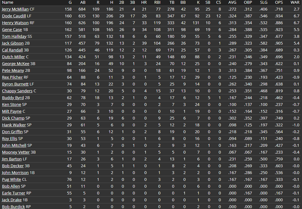 As big a part of the 2nd ranked offense as Duncan was, he contributed little to the 2nd ranked staff, as defense is not a part of his game. When he was here, John Mitchell (5-1, 1.41, 25) was awesome, but for the most part it was the veterans in Milwaukee that carried the staff. Former 5th Overall pick Jake Roberts (14-4, 2.52, 86) Was elite at 39, and we got great innings from Foster Sherman (8-7, 2.50, 102), Allen Brown (6-9, 3.12, 104), and Jack Thomas (6-2, 2.79, 52), and before his September callup Doc Cook (4-2, 12, 2.09, 42) was an anchor of the pen. 40-man roster members Bob Burdick (4-1, 7, 3.46, 49) and Phil Means (2-8, 13, 3.65, 46) were effective, as was Rule-5 eligible hurler Herb Thomason (3-1, 1, 3.70, 55), but it wasn't at the level of the big league pen. The lineup saw a lot of players get extended looks, with the best performances aside from Duncan coming from interrupted stints. Mooney Vetter (.302, 16, 63) and Chappy Sanders (.289, 11, 42) combined for just over one excellent season's worth of plate appearances. Unfortunately the only real young talent, Wayne Wilson (.249, 5, 27), saw his season end after a serious concussion in May. I'm hoping next year the Blues get a big year from Orlando Benitez and Bill Reinhard, with the chance for Bill Grimm to hit his way up. This team could be a real force, and there's some potential 40-man guys who weren't there this year to upgrade both sides. AA Little Rock Governors (AA Dixie League): 74-56 (.529), 3rd, 9 GB): Home to the now 34th ranked prospect Orlando Benitez, the Little Rock Governors may not have been as good as the record indicated, though they were in the right tier in the Dixie League. While not a bad team, they weren't a real contender, as a lot of the heavy lifting was done by one guy. Almost 21, the former 1st Rounder hit .310/.420/.573 (162 OPS+) in an MVP quality campaign. Logging 20 doubles, 5 triples, 29 homers, 93 RBIs, 85 walks, 77 runs, and 14 steals, he was one of the league's most valuable players, providing his club with offense and defense. The supporting cast lacked thump, but Bill Reinhard's (.300, 17, 36) 60 fames were Benitez level, and in 89 games Cliff Coleman (.252, 17, 46, 13) impressed. When the three were together, the Governors were great, but Benitez was the only one who spent all season here. In the rotation Whitey Gates (5-5, 3.93, 53) and Humberto Fonseca (2-2, 3.30, 25) gave good starts, but I expected more from Sam Davis (12-9, 4.55, 167). I think all three will be back in 1964, and with a few adjustments the rotation can be a strength of the roster. A Rockford Wildcats (Heartland League) 77-63 (.550), 3rd, 4 GB: Milwaukee may have finish closer to first ordinally, but it was the Rockford Wildcats who had the fewest games between them and first. Just four out, the 'Cats had a rough end to the season, dropping 23 of their last 50 games to fall out of first. In a sense, it's a simple cause, as both Bill Reinhard (.332, 12, 51, 4) and Cliff Coleman (.344, 14, 43, 3) finished their season in Little Rock and combined for fewer then 120 games. Another midseason callup, though in the Wildcats favor, 22nd ranked prospect Bill Grimm (.301, 11, 46, 8) was excellent after coming from San Jose, and WAR leader Sam Pratt (.327, 14, 72, 14) came up a few weeks earlier. Stuck in a sort of transition phase, the offense couldn't quite get rolling, and I imagine next season it will be Grimm at Pratt going up and someone else having to come up to cover. The staff was really good, led by the pen courtesy of Pep Allen (8-7, 14, 1.85, 82) and Floyd Lane (4-1, 3, 2.23, 51). Like with the lineup, plenty of guys came and went, with Humberto Fonseca (6-5, 2.90, 102), John Roberts (7-3, 3.50, 49), and Whitey Gates (5-5, 3.93, 53) all impressed in the 13 to 16 starts. There's a lot of question marks in the rotation this year, and in a year or two we'll start to see our new influx of prospects impact the middle of our system. B San Jose Cougars (California-Oregon-Washington League): 83-57 (.593), 3rd, 6 GB: In terms of winning percentage, the Cougars were the best of our full season affiliates, though it was this level not the major league club. A bit of a surprise, San Jose was dealt with arguably the most roster churning, as early in the season I had to shuttle guys from La Crosse and back and then after the draft some underdeveloped guys were pushed up. Still, they competed all season long, scoring plenty of runs. Some of the full-season guys did well, as Rafael Zambrano (.328, 11, 58, 11) and Sam Morrison (.299, 11, 55, 12) has similarly solid seasons. Zambrano hit for a higher average and Morrison played better defense, as they were the rocks of the lineup. Pieces of Joe Gallerani (.380, 9, 24, 6), Sam Pratt (.350, 1, 6, 3), Bill Grimm (.301, 11, 46, 8), Josh Davis (.332, 6, 26, 5), and Raul Zamora (.279, 19, 58) filled in the gaps, as a collection of arms allowed just few enough runs to win some games. C La Crosse Lions (Upper Mississippi Valley Association): 38-24 (.613), t-3rd, 4 GB: Despite no champs, we get all the way to the bottom of the system, and not a single below .500 record can be found! Our only .600+ affiliate, the Lions got hot at the end of the year, starting with a 21-7 August that almost brought them up to first. Thank Harry Cummins for that, as the Hank Williams of the UMVA hit .453/.562/.858 (216 OPS+) with 21 doubles, 5 triples, 20 homers, 63 runs, 79 RBIs, and 50 walks. Worth a tenth of a win away from 5 in just 61 games, I'm sure he set every record out there with his monster season, and finishes his 567 PA UMVA career with a .403/.527/.761 (200 OPS+) batting line. Farm from the only notable performer, 10th Rounder Johnny Maples (8-1, 1.72, 42) was flatout dominant, sporting an otherworldy 331 ERA+. In the league, even a ERA above 5 like Hub Russell's (4-3, 5.05, 45) was still 13% above average. Him and Johnny Kern (3-4, 4.08, 43) both survived their first tests, as did 7th Rounder Bo