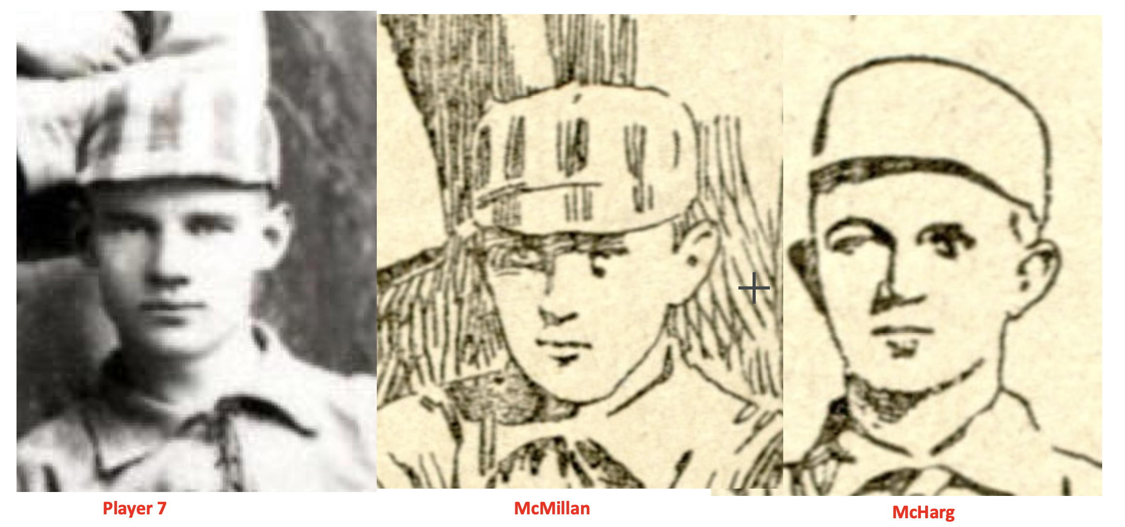 A comparison of the player identified as Tom Hogan in the photo caption in the book is shown below with McMillon and McHarg. And as noted, I think Hunter resembles one of the other unidentified players.
