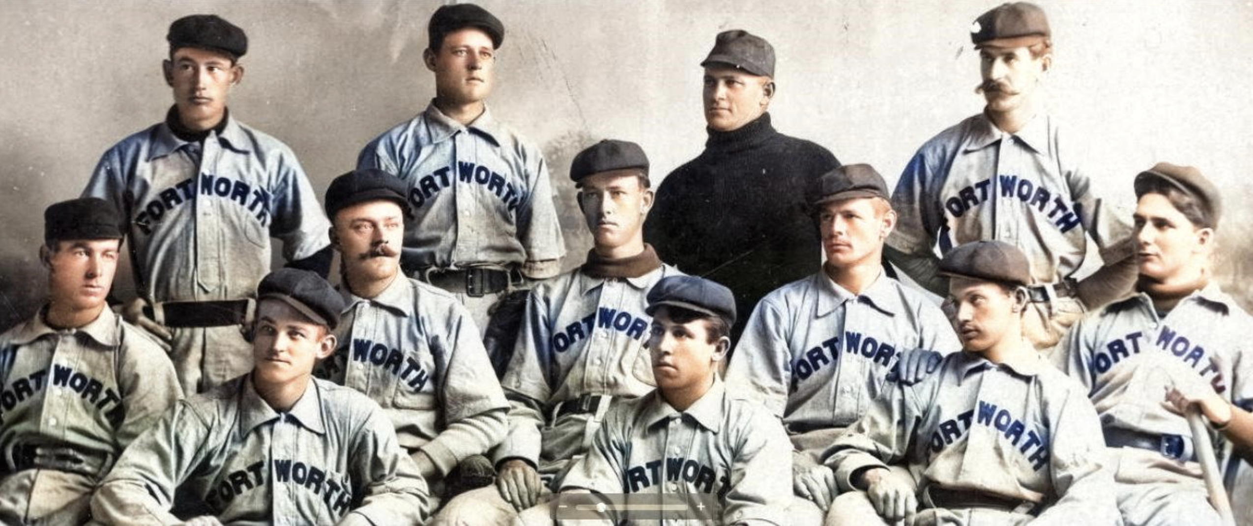 In 1895, Fort Worth had a club in the Texas-Southern League. This photo is included in a post about the history of the Fort Worth Cats by the Fort Worth Historical Society (https://www.fwhistorical.com/fortworthhistorycats). I take no credit for the colorized version presented here. It is not clear when during the season the photo was taken.