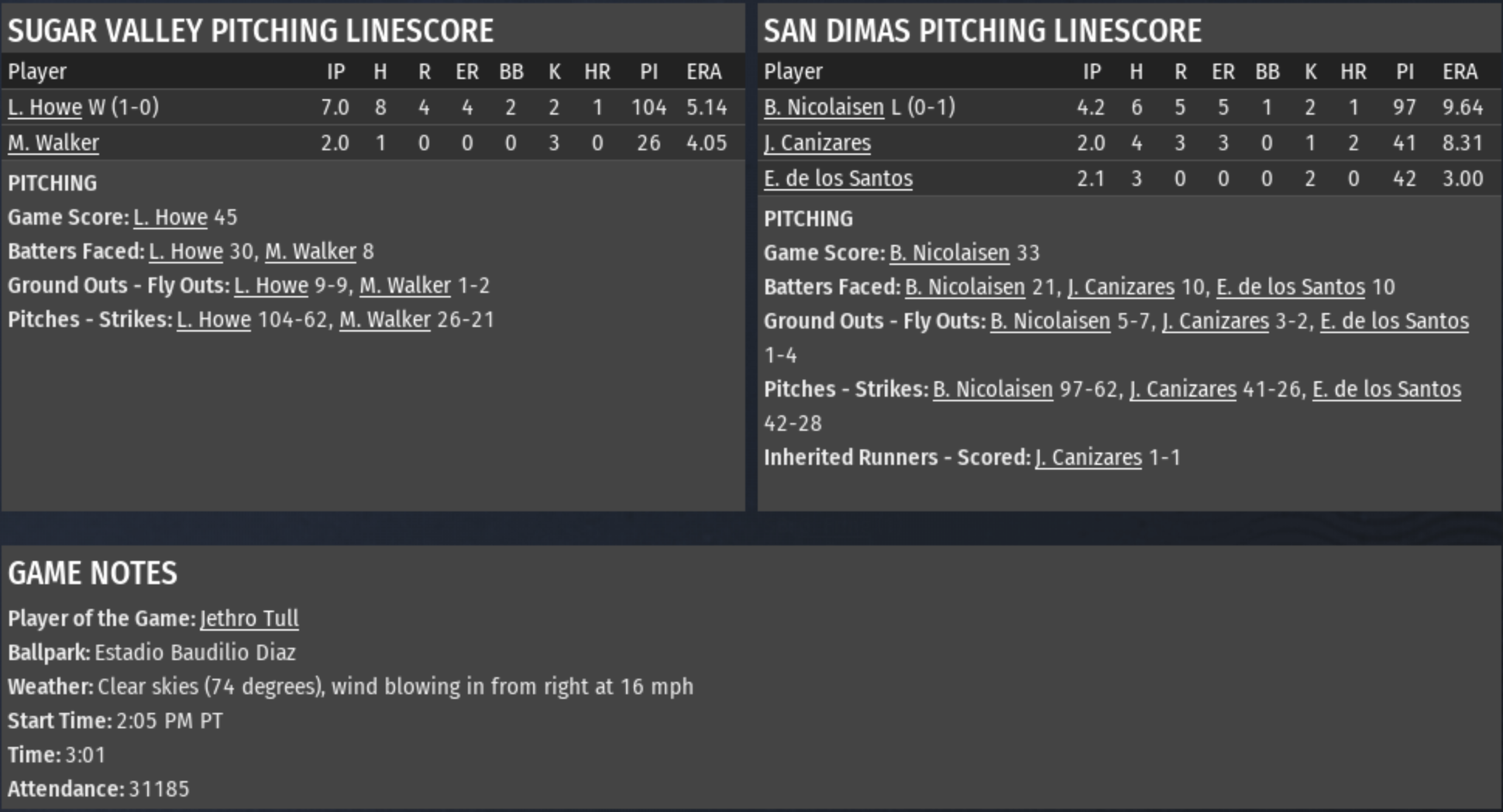 RU Kilkenny Hops (106-56) vs. Sugar Valley Rattlers (144-18) TU Turon Typhoons (138-24) vs. Blue Lake Blue Caps (139-23) |
