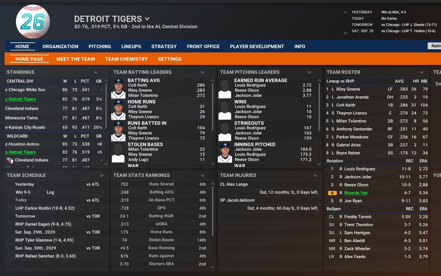 The Tigers (82-76) sit in second place in the Amercian League Central Division, 3.5 games behind the first-place Chicago White Sox with four games remaining in their regular season. It is the second straight postseason berth for Detroit, which won the division in 2028. The Tigers last reached the World Series in 2012, losing to the San Francisco Giants. Their last World Series title came in 1984, when they defeated the San Diego Padres. Last edited by rink23; 09-25-2025 at 04:39 AM. |