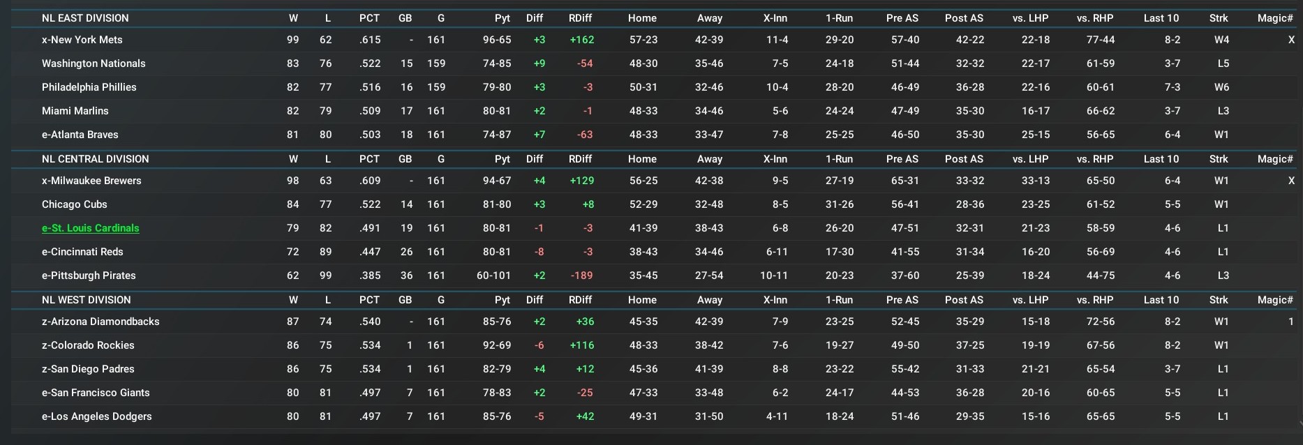 Record: 78-81, 3rd, 19.5 GB Milwaukee; Eliminated from wild card