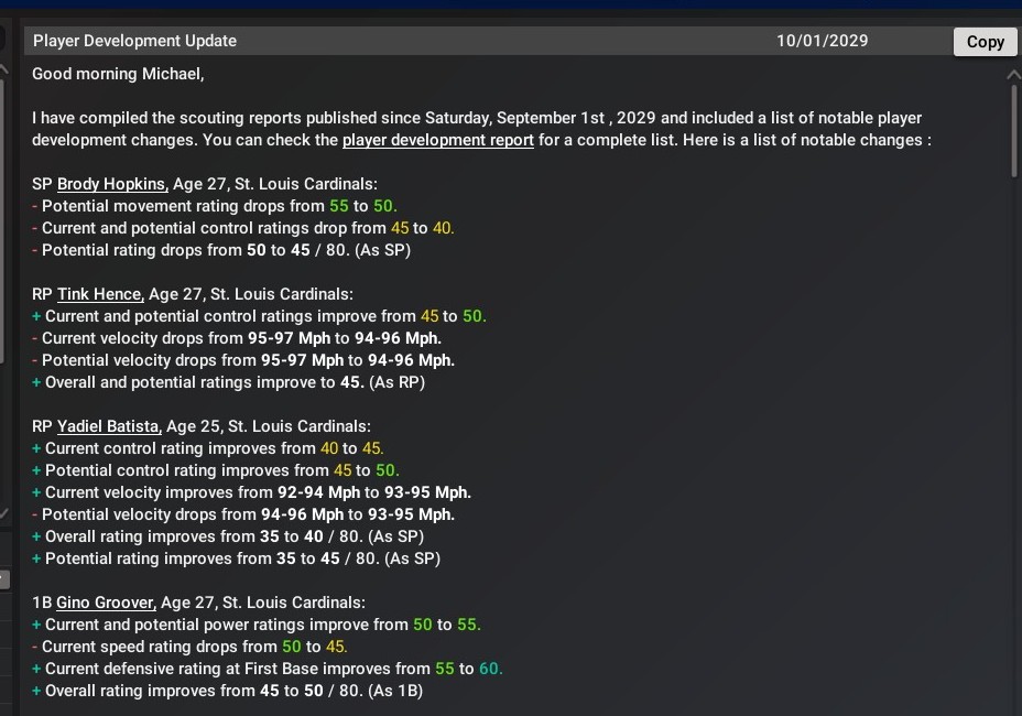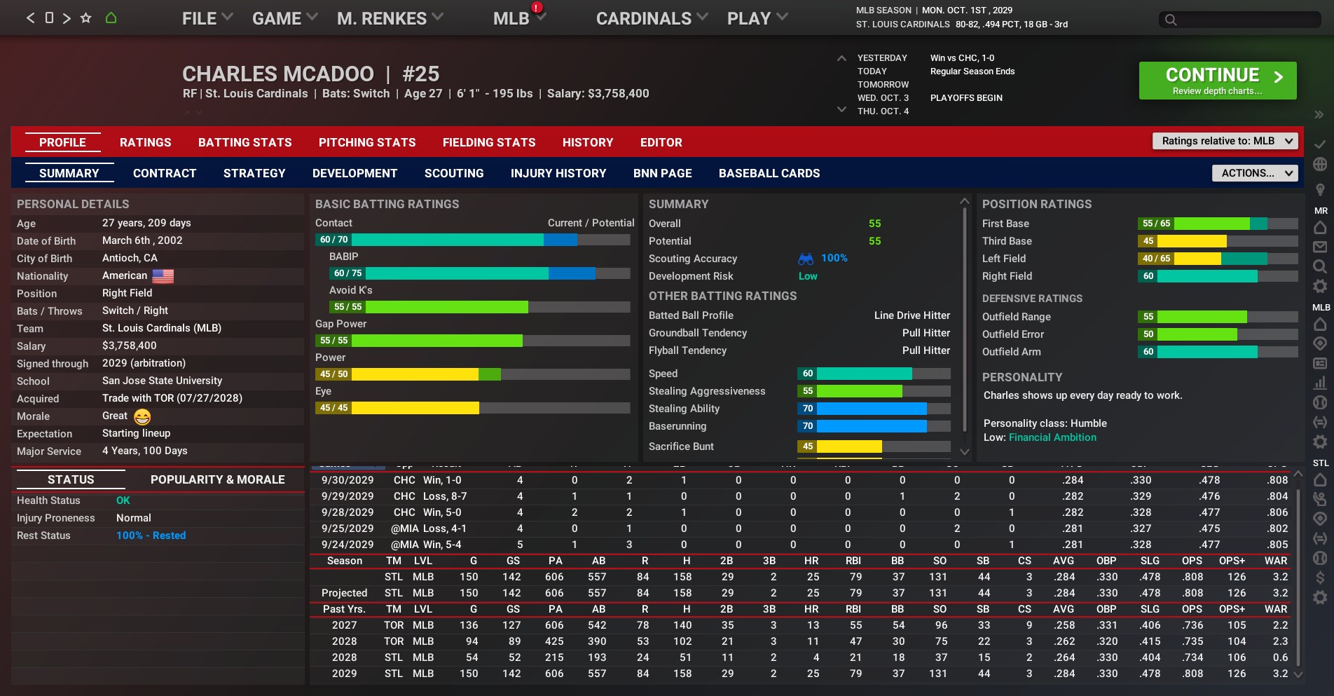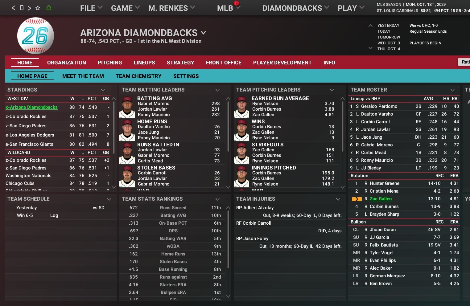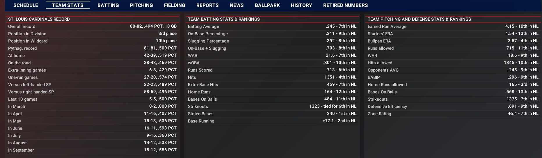 Cards news: Oct. 1 -- Final 2029 team statistics