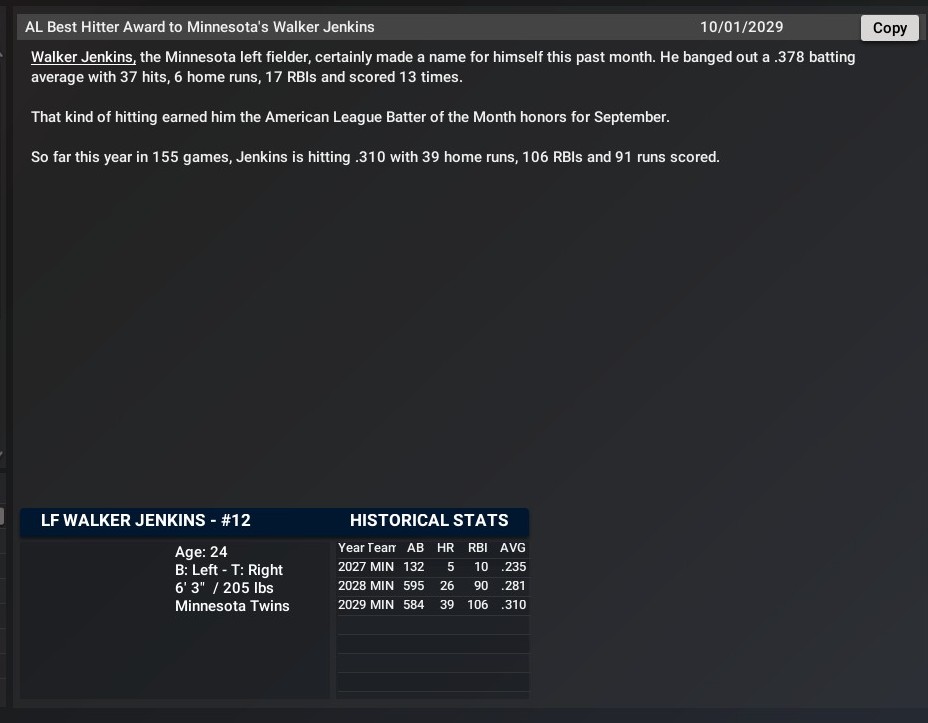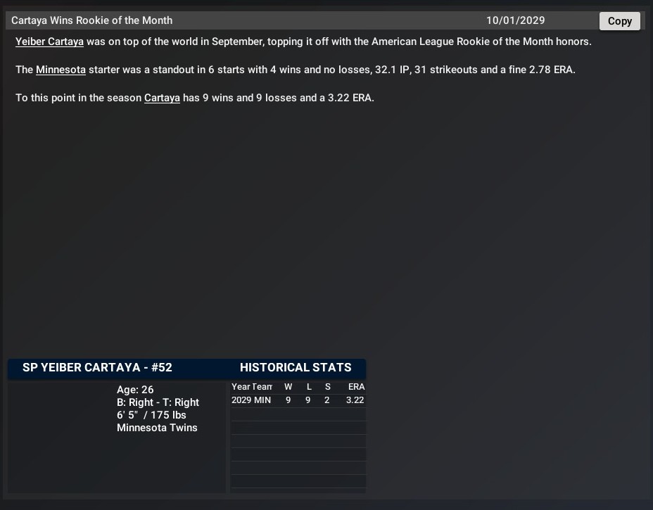 With that win, theTwins (80-82) edged out the Cleveland Indians for that last wild card. Minnesota finished in third place in the American League Central Division, 7.5 games behind the first-place Chicago White Sox. The Twins are back in the playoffs for the first time since 2025. They last reached the World Series in 1991, when they defeated the Atlanta Braves in seven games. |