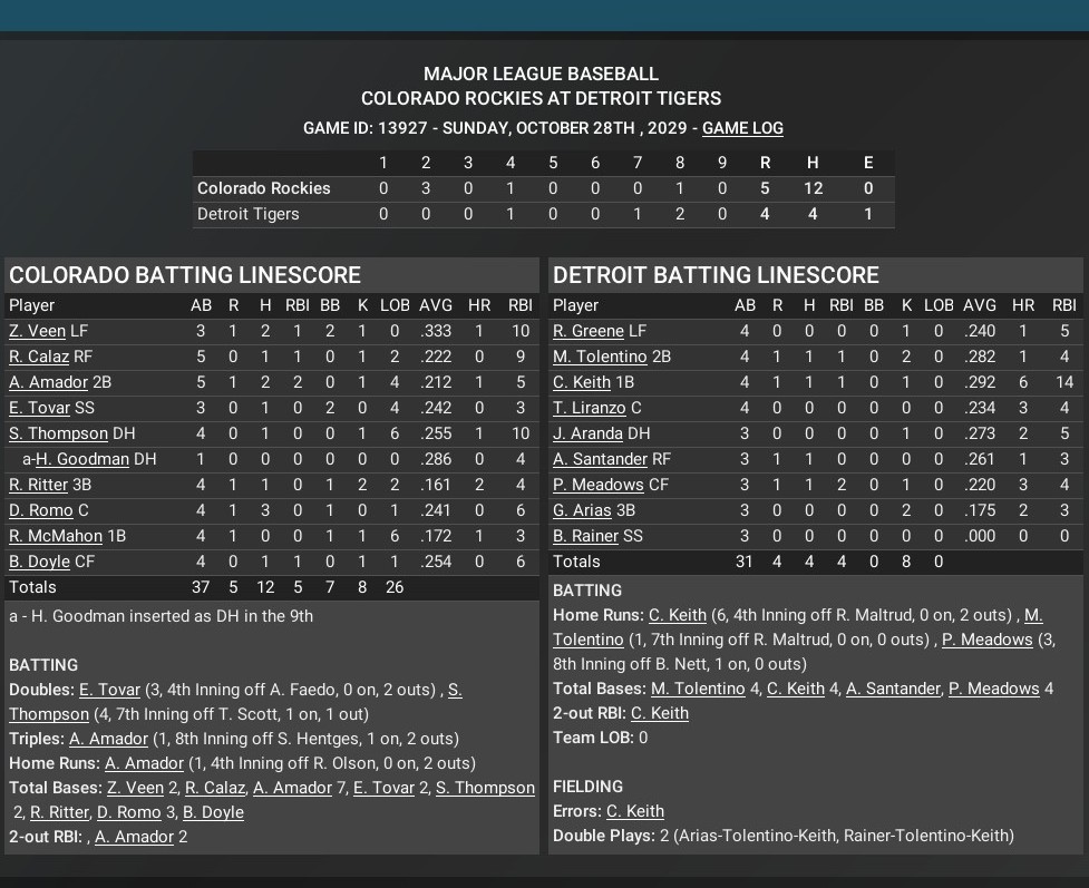 MLB news: Oct. 28 -- World Series Game 3 - Colorado Rockies 5, Detroit Tigers 4, Rockies lead 2-1