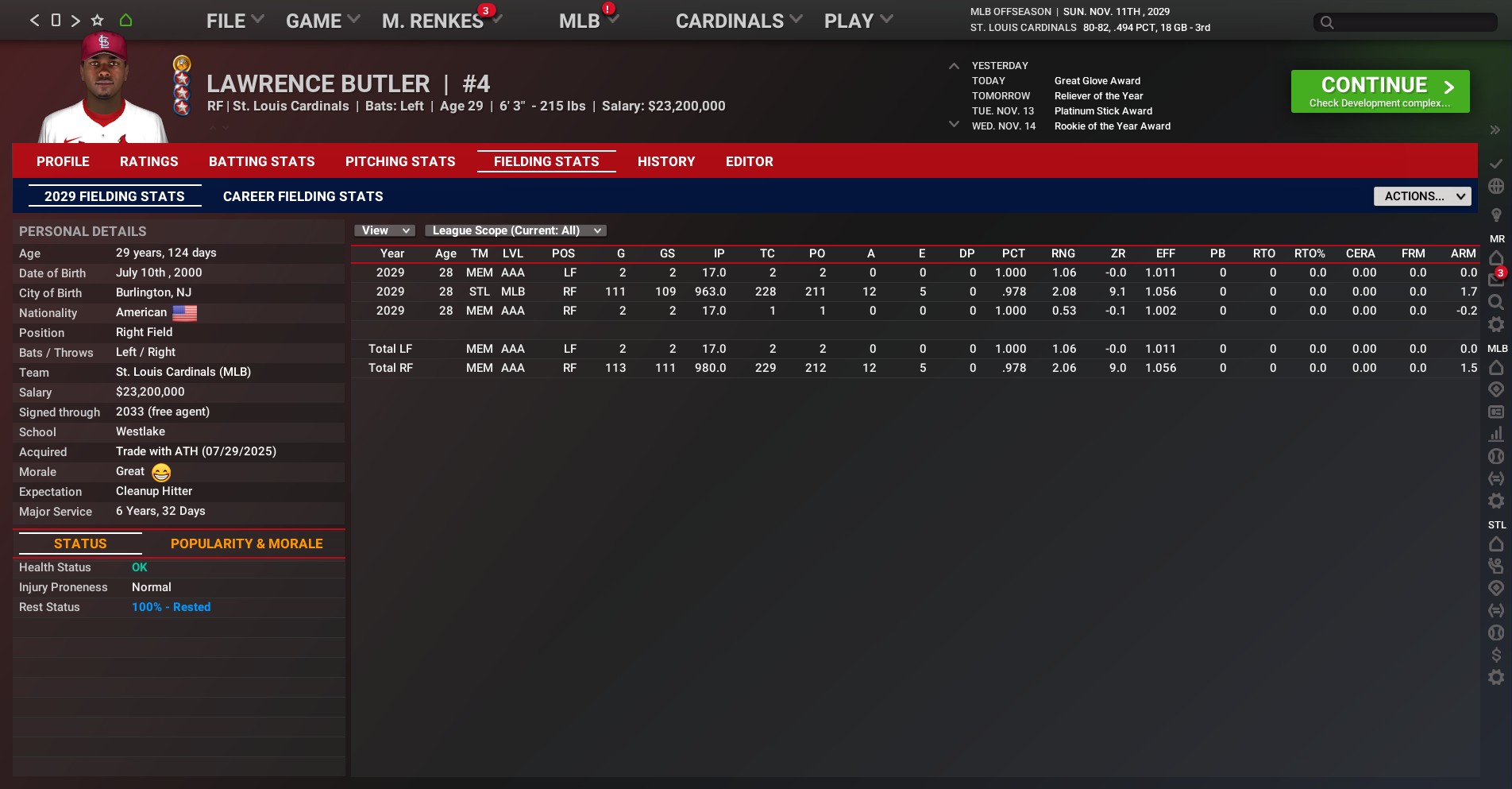 Cards news: Nov. 11-- Outfielder Lawrence Butler wins his first Gold Glove
