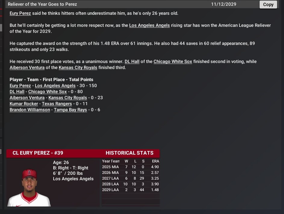 MLB news: Nov. 12 -- Top reliever awards go to Angels' Perez and Mets' Santos