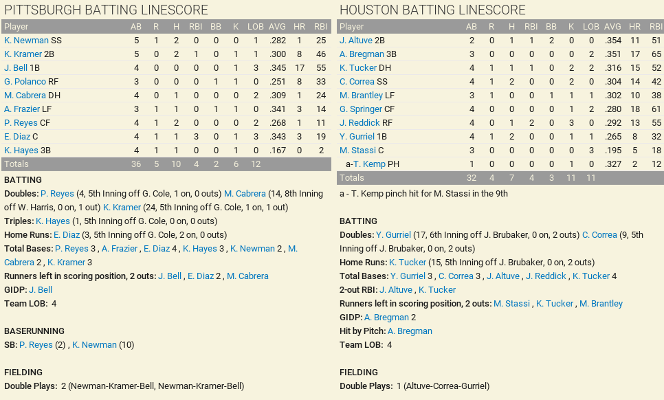 Well done Pirates! A dominant performance by SP Chris Archer, 2B Kevin Kramer jacks two homers to reach 10 on the year, and everybody contributes in a blowout sweep of Houston. The Houston Astros manager compliments us on the sweep, but makes it a backhanded compliment too. "The Pirates certainly played well, but I don't think we underestimated them. "They just got hot at the right time". While I secretly agree with his thoughts, the team has chosen to make that their "corkboard diss". If that's the motivation they need to keep playing well, then its good by me! |