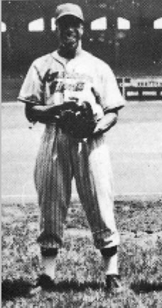 Johnny Williams, P, is shown in the uniform of the Indianapolis Clowns.