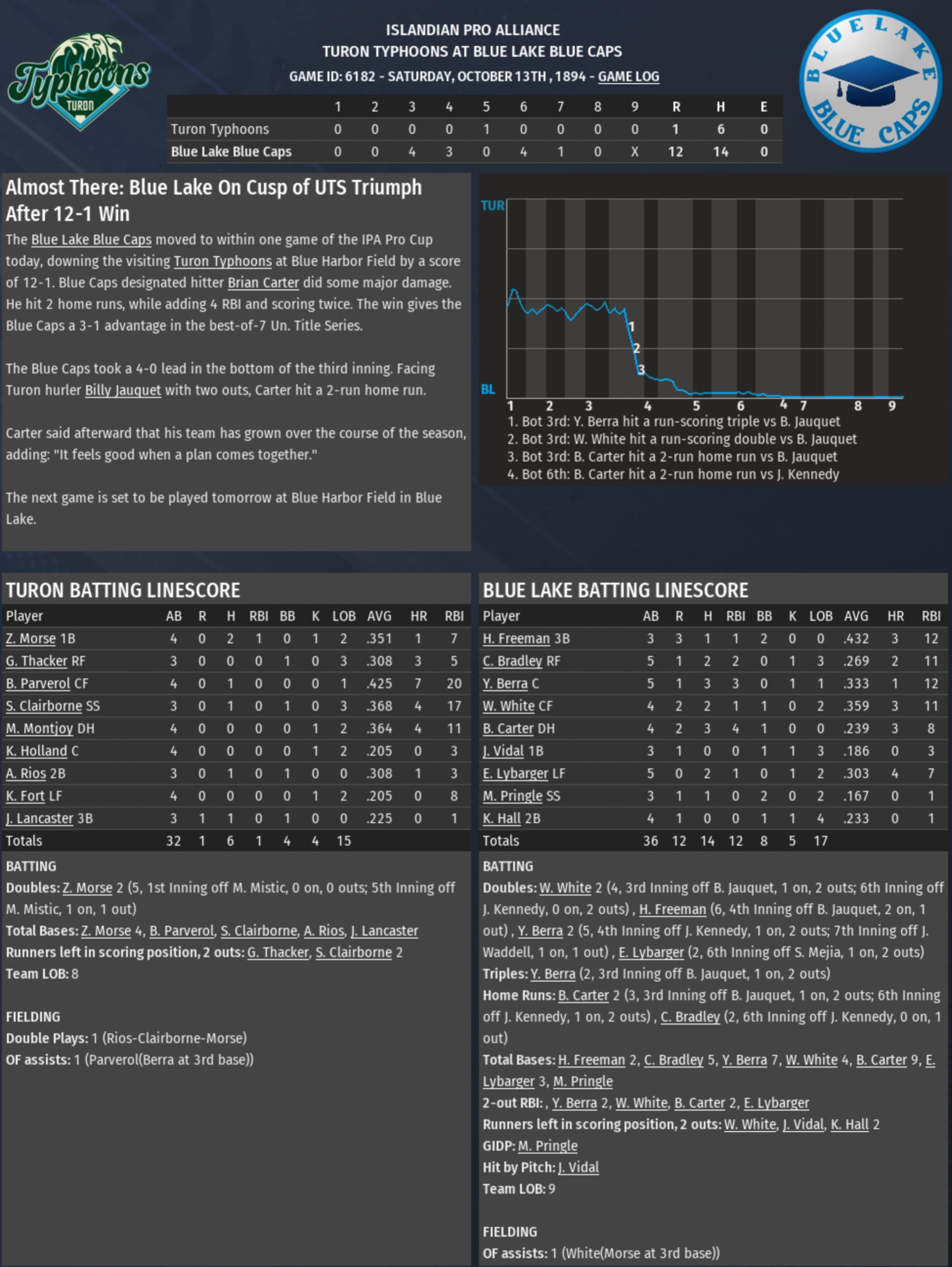 The Blue Lake Blue Caps have become the second franchise to win 3 Pro Cups, joining Glasco at the top of the heap. It's the 2nd title in 4 years for the Blue Caps. Henry Clarence Freeman has accomplished many great things in his long, prestigious career, and he finally has a championship ring. |
