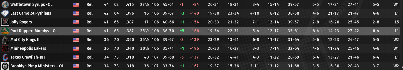 Chicago is the only OL team in a relegation spot, while Death Valley, Brooklyn and Ft. Huachuca are all slated for the playoffs. |