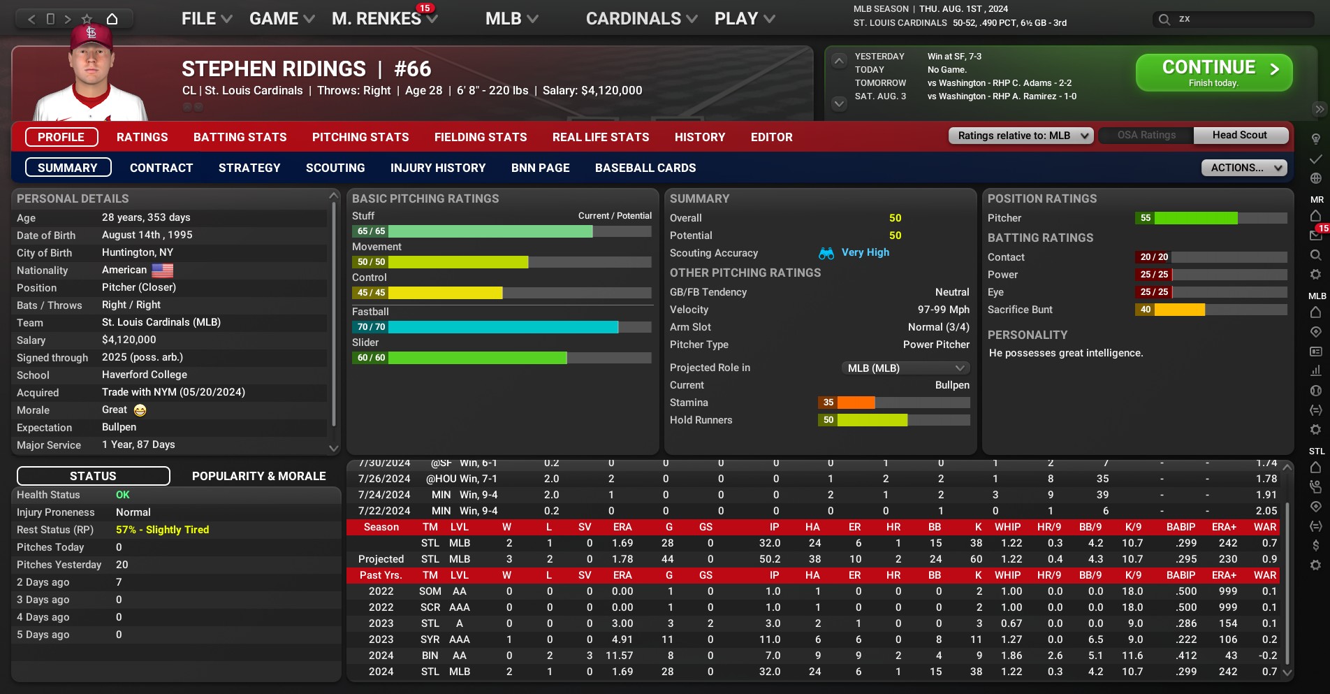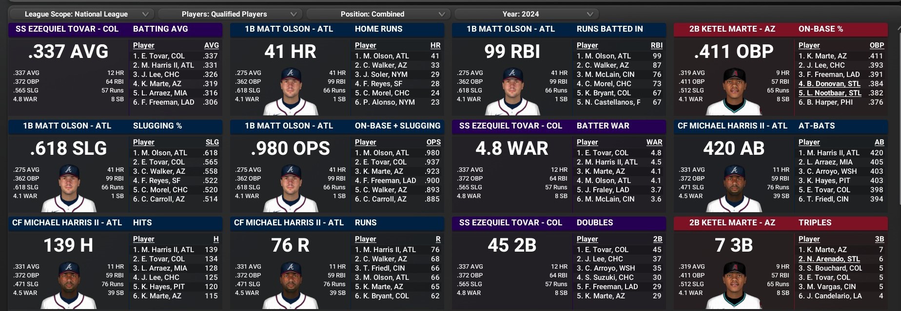 Cards news: August 1 -- 2024 team statistics