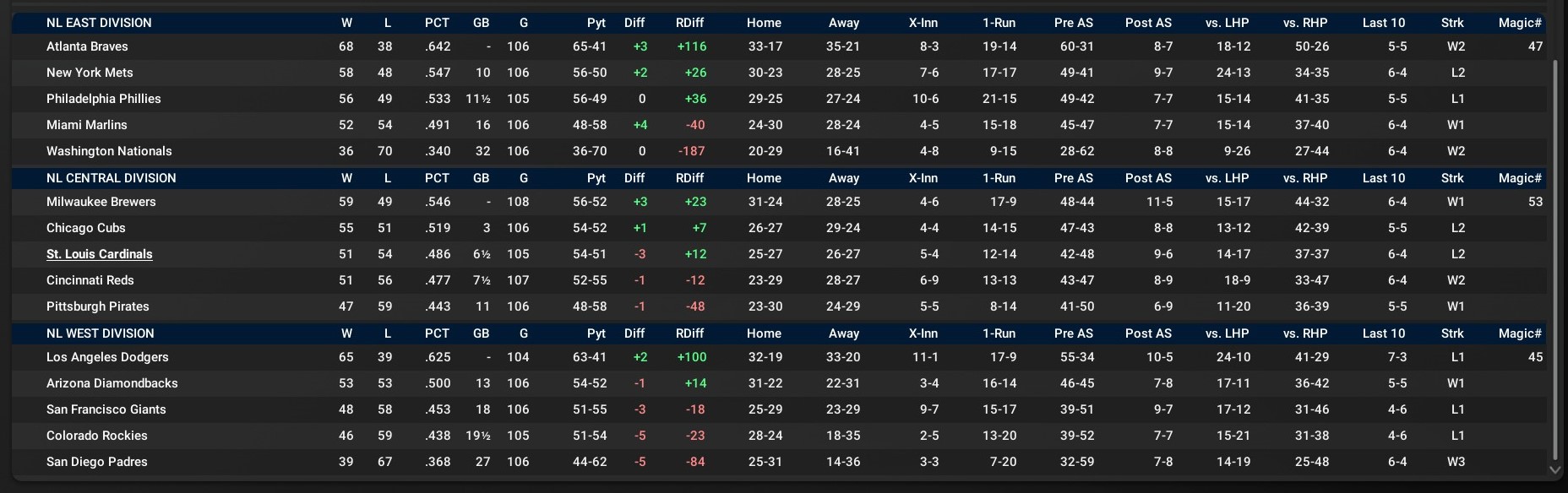 Record: 51-56, 3rd/(Tied/w. Cincinnati), 8 GB Milwaukee