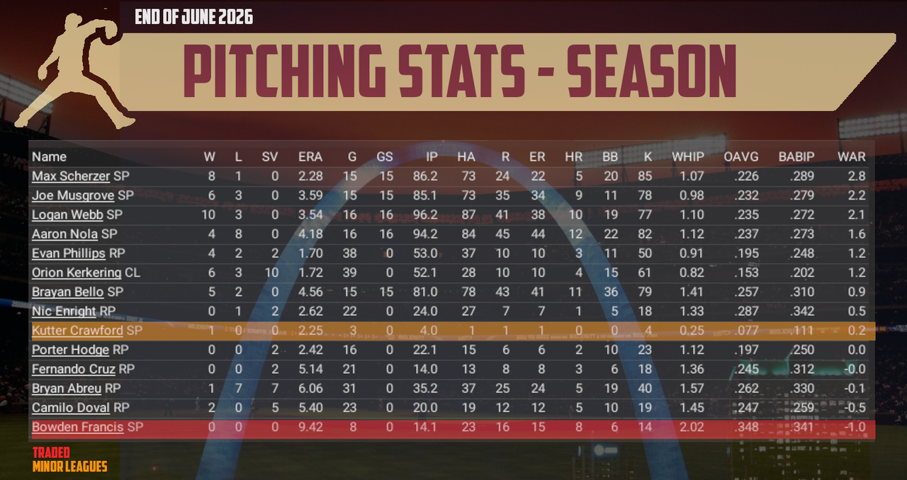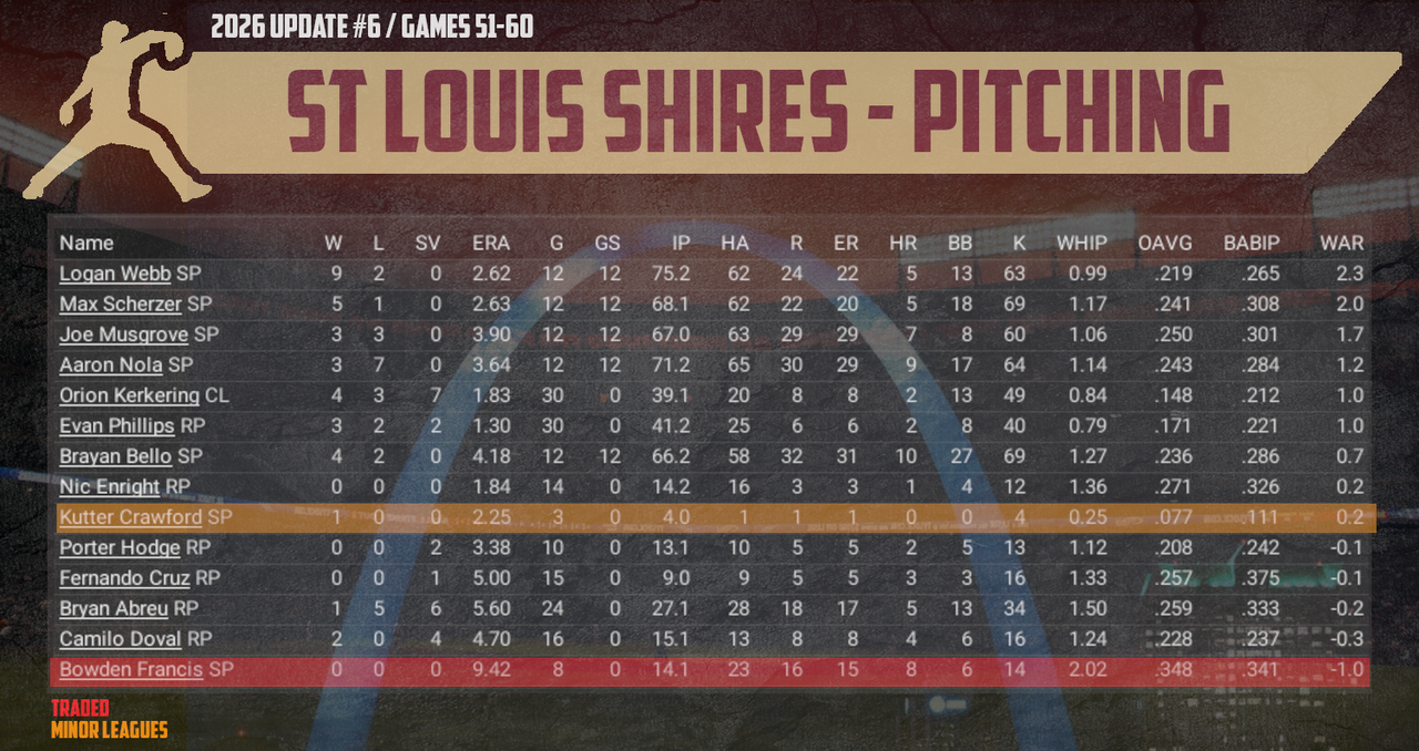 ![]() ![]() WEST - PITCHER OF THE YEAR RACE -------------------------------------------------------------- [1] H. Brown MRY - 8.5 [2] T. Skubal LAL - 8.1 [3] T. Wells SPA - 7.9 [4] S. Alcantara MEX - 7.6 [5] P. Skenes MEX - 7.5 [6] C. Schmidt MEX - 7.5 [7] Y. Kikuchi TEX - 7.4 [8] G. Rodriguez LAL - 7.1 [9] L. Castillo OKL - 7.0 |