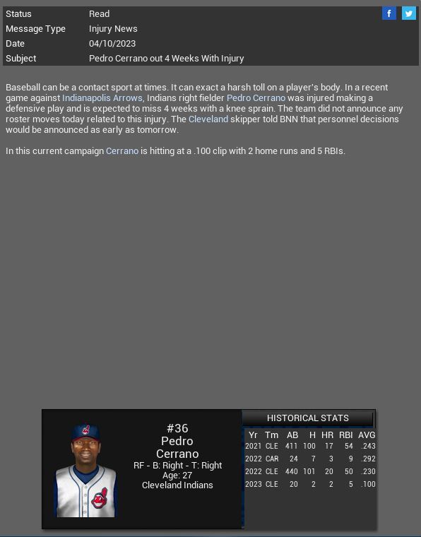 Hyperspace lose RF Oswaldo Arcia for 4-5 months. Indianapolis Arrows sign LF Mason Williams to a 1 yr deal. Anderson Indians sign 1B Miguel Ramirez to a 4 yr extension.