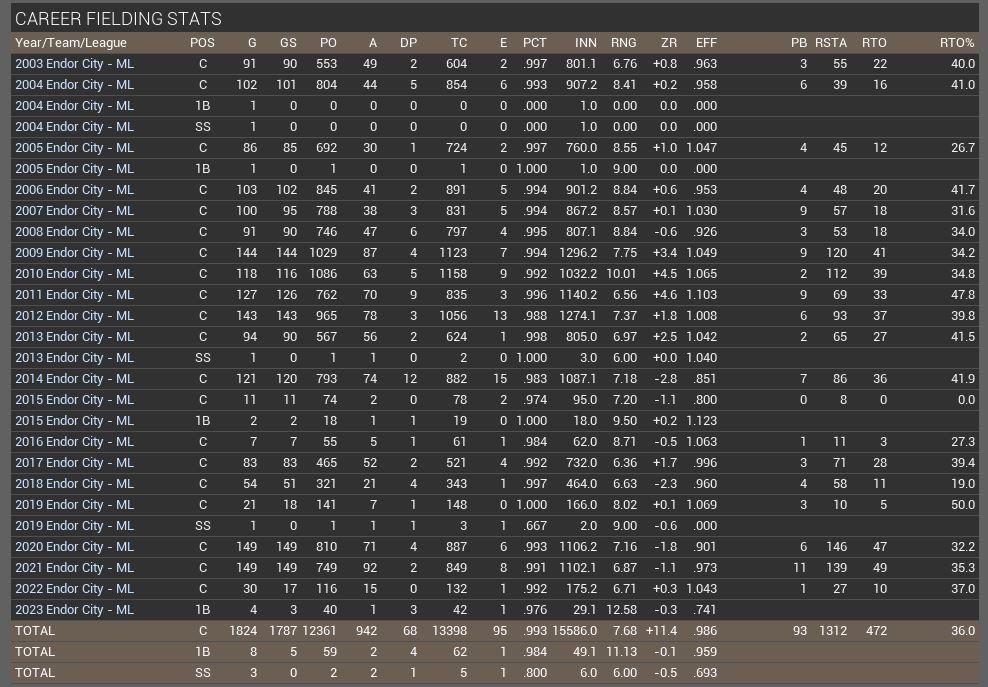 He is the all time leader in games caught, most HR, most RBI & most K for any EBL Catcher.