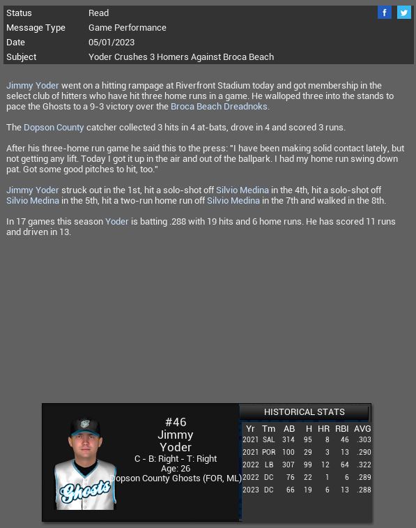 Go Back   OOTP Developments Forums > Out of the Park Baseball 25 > OOTP Dynasty Reports