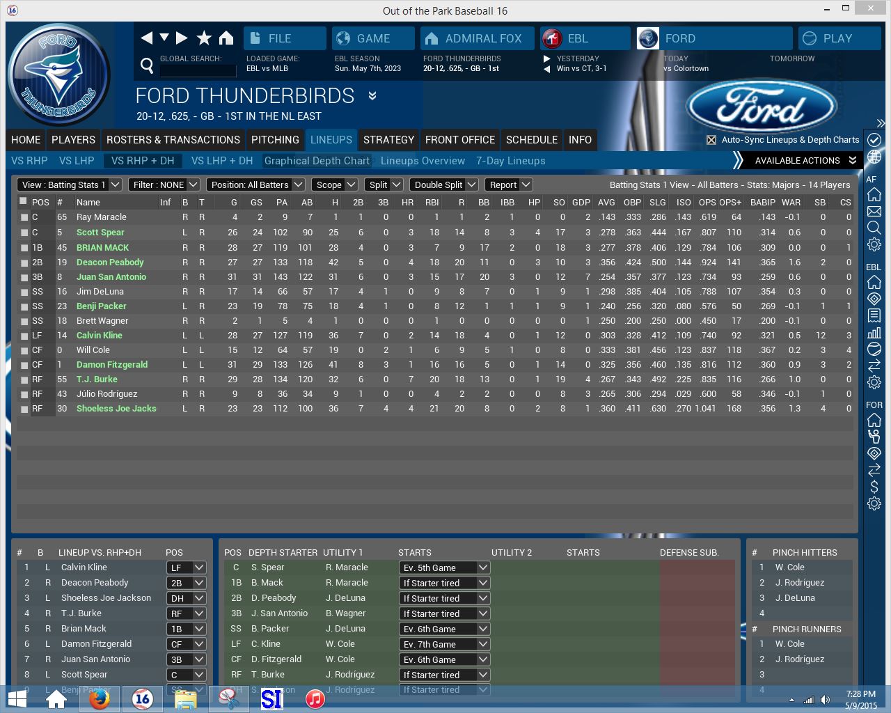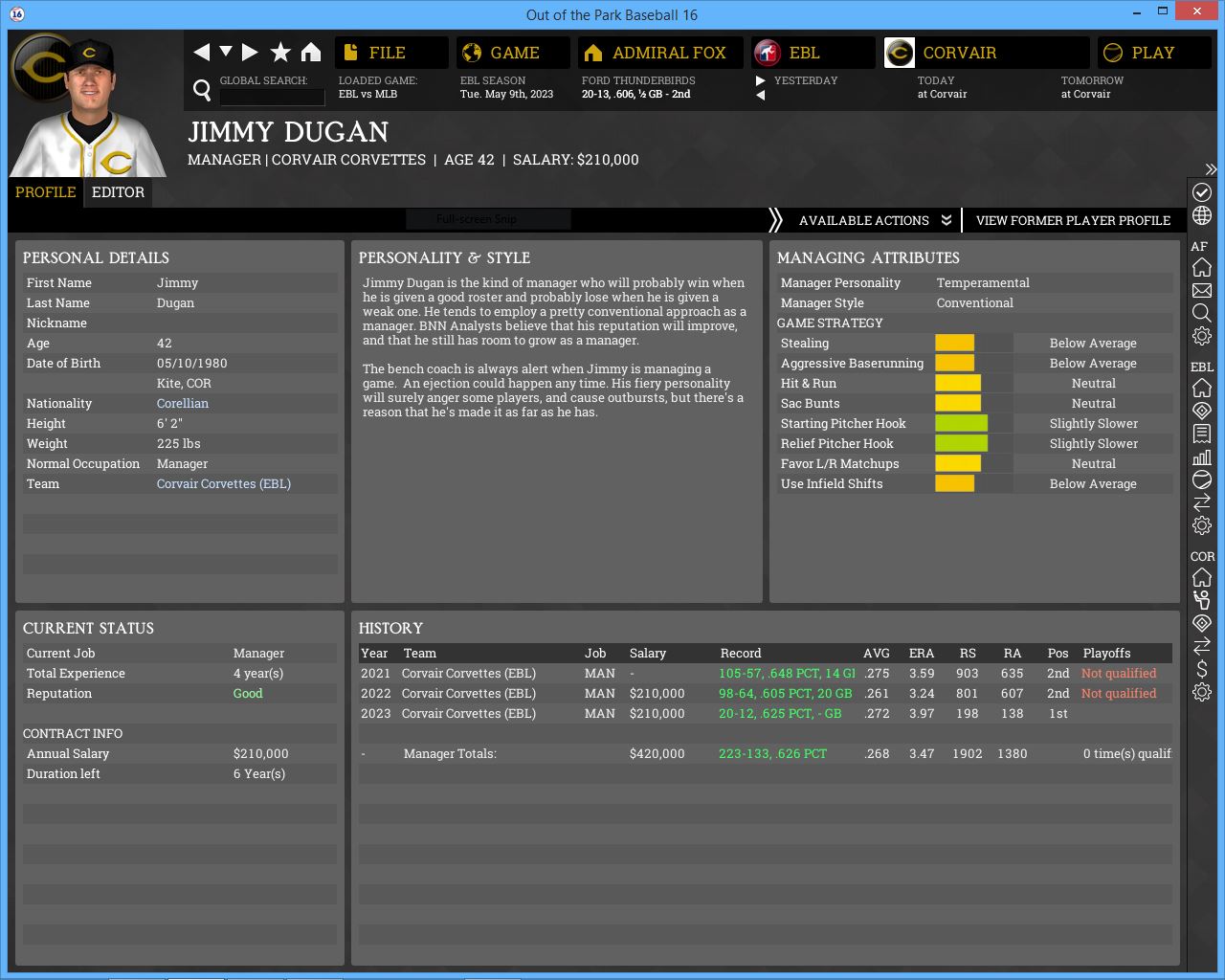 (I had 2 Robin Ventura's as managers. one who is the current BC for the White Sox and one who was a career minor league MGR. I deleted the minor league guy and manually put Pepper is as MGR of Chevy)