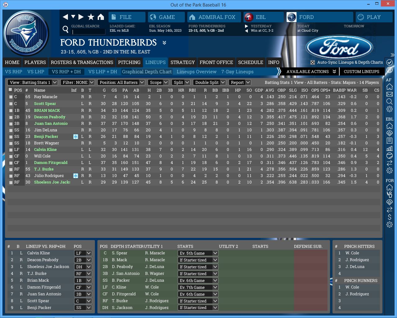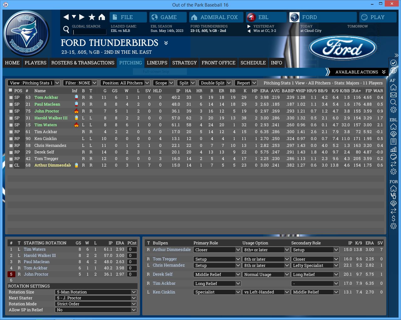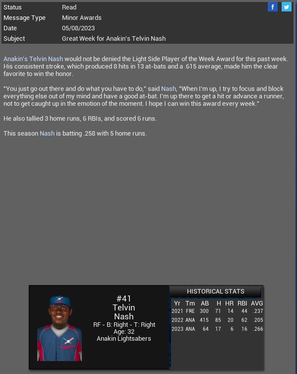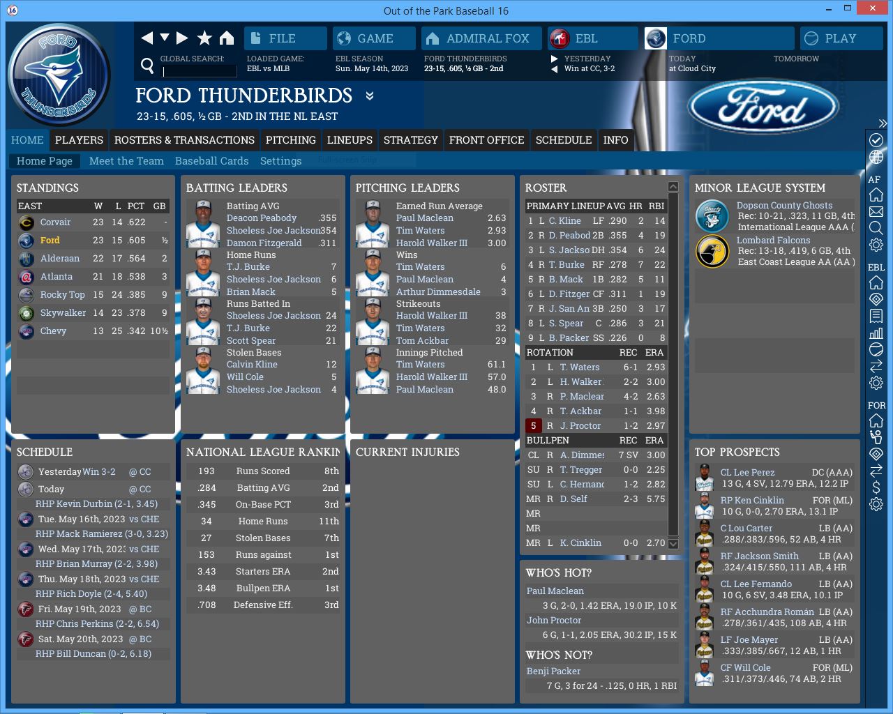 3-3 this week. We are a .500 team so far this month. Corvair took 2 of 3 from us. Not too worried about it so far. Screwball is a tough pitcher to get to and Jessica McClintock dominated us but we dominated James Jamieson. I sent over Jackson's re-sign paperwork to his agent, he should sign it within a week.