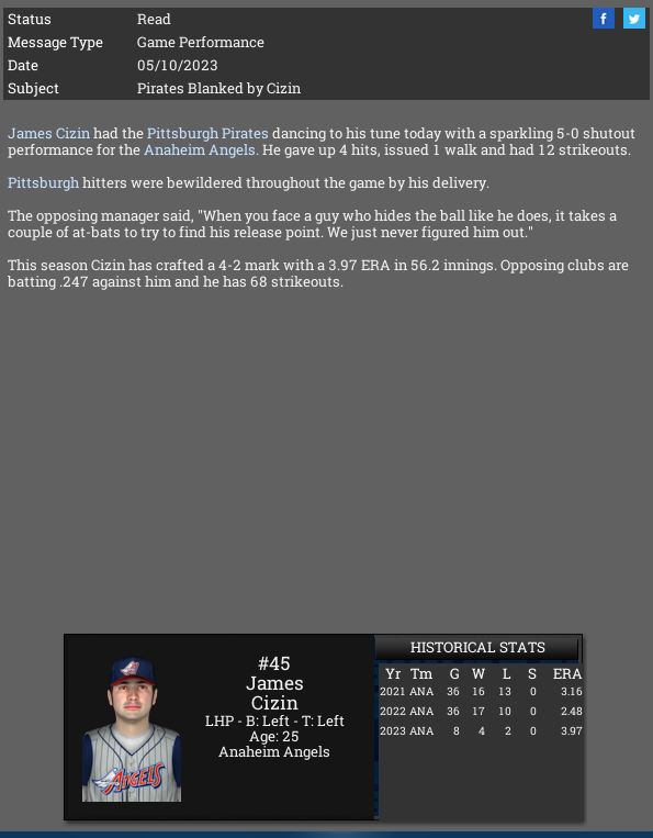 Anaheim's James Cizin blanks the Pirates with 12 K.