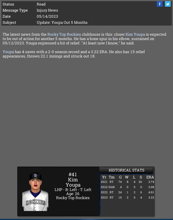 Rocky Top loses RP Kim Youpa for the season.