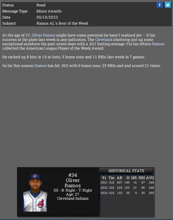 Cleveland Indians SS Oliver Ramos is named MLB AL POTW.