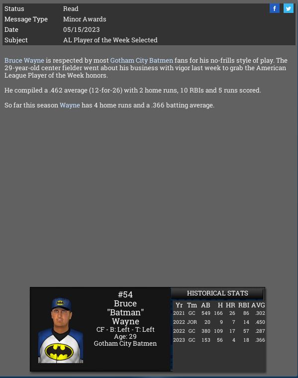 Bruce Wayne is named EBL AL POTW.