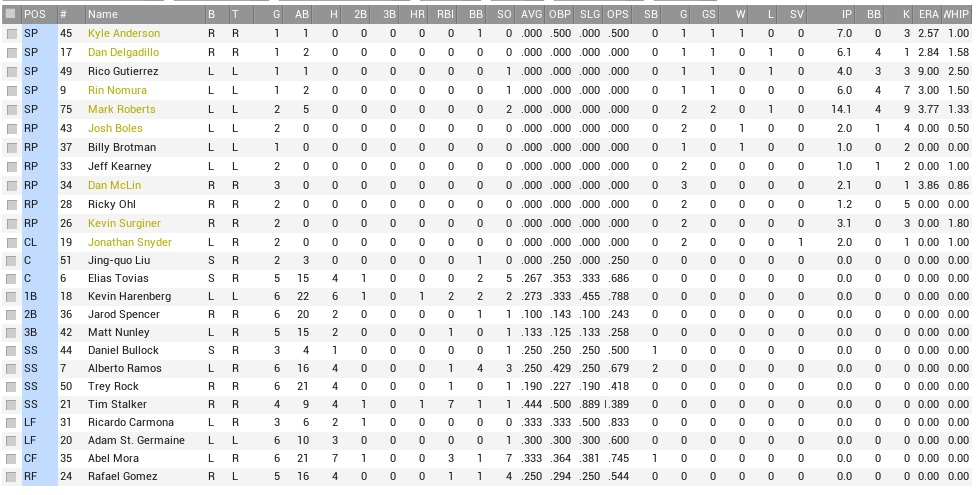 The Raccoons would have their first stop on a week-long road trip in Oklahoma City, playing the second-place Thunder – yup, .500 ball was enough for second place (and only a half-game deficit!) in the CL South right now. Oklahoma ranked fifth in offense, but ninth in denying offense with a -7 run differential (Coons: +48). They had some bits in place; but were missing plenty of more bits for a contending team. The Raccoons tried to win the season series from them again, as they had done last year when they had taken five of nine games. Projected matchups: Rin Nomura (4-3, 3.56 ERA) vs. Chris Wickham (0-2, 6.82 ERA) Rico Gutierrez (3-4, 3.84 ERA) vs. Jeff Dykstra (5-3, 3.07 ERA) Mark Roberts (3-2, 3.16 ERA) vs. Andy Palomares (6-2, 2.63 ERA) So far this season the Raccoons had faced right- and left-handed starting pitchers at exactly a 2:1 ratio, and this trend would continue in this series, with the left-hander Wickham beginning the meeting on Tuesday, followed by two right-handed hurlers. Game 1 POR: SS Ramos – LF Spencer – RF Gomez – 1B Harenberg – CF Mora – C Tovias – 2B Stalker – 3B Rock – P Nomura OCT: 3B L. Rivera – C Burgess – 1B J. Elliott – SS Serrato – RF Sagredo – CF Pagel – 2B Cameron – LF Camarillo – P Wickham The Coons got Ramos (walk) and Spencer (single) on base to begin the game, but failed to score either of them with the most pathetic chain of outs by the middle of the order, while the Thunder put John Elliott aboard with a 2-out infield single, Nomura walked Alex Serrato, then surrendered an RBI double to left-center to Luis Sagredo, who came in batting .177, to fall behind 1-0 in the first inning before Kyle Pagel grounded out to Trey Rock. When Elias Tovias tied the game with a solo homer in the second inning, Nomura found another struggling batter to give a moral boost to, getting taken WELL deep by Danny Camarillo, a .176 batter, in the bottom 2nd. Maybe things could still go either way. A Serrato error put Jarod Spencer on base to begin the top 3rd, and Rafael Gomez immediately walloped a hanging breaking ball over the fence to flip the score the Coons' way, 3-2. Here was, finally, a struggling pitcher however the Coons seemed to be able to take apart. The 3-4-5 batters all reached base in the fifth inning with Gomez singling, Harenberg knocking a double to center, and Mora chipping in an RBI single, 4-2, before Tovias scored Kevin Harenberg with a groundout, 5-2. One run had been unearned earlier on the Gomez homer, so the Thunder hung a bit longer with Wickham, which didn't pay off. Rin Nomura – not exploding yet – hit a 1-out double in the top 6th on which Kyle Pagel did not look very competent, Ramos walked, and then Spencer and Gomez chipped in RBI hits to extend the lead 7-2, which was finally the curtain coming down on Wickham. Right-handed former starter Max Nelson took over and got out of the inning when Gomez was caught stealing and Harenberg grounded out weakly. Now, what about the mandatory Nomura collapse? You needed some fine hearing to make out the early warning bells especially since he hadn't pitched spectacularly to begin with and had only two strikeouts through five innings. He opened the sixth with a leadoff walk to Mike Burgess, though he got wrapped up in a double play on Elliott's grounder. Bottom 7th, Luis Sagredo led off with a soft single. Pagel hit another soft single. I'm not sure, but I think there are some discords in the music here. A walk in a full count to Joe Cameron loaded the bases with nobody out and got Ricky Ohl involved, maybe a batter too late? Tim Stalker really freaked me out when he bobbled Camarillo's grounder for an error when it could have been two outs. A run scored anyway, 7-3. Ohl struck out Brett Dobbs, then had Lorenzo Rivera hit a liner at Harenberg on an 0-2 pitch. Kevin shagged the ball, but couldn't double off Pagel, who had started early from third base. Rookie mistake! Burgess was rung up by Ohl to end the inning. Portland pulled the run back in the eighth inning with kind support by the Thunder pen, which hit PH Adam St. Germaine to move Trey Rock and his leadoff single to second base, ultimately resulting in a run-scoring groundout when Matt Nunley batted for Jarod Spencer, and a ninth run came about in the ninth inning via Abel Mora singling, stealing second, moving up on a wild pitch by Arturo Arellano, and ultimately scoring on a Tovias single. Billy Brotman, pitching to right-handers exclusively, would put two on in the bottom 9th, but the Thunder didn't stage any sort of rally anymore. 9-3 Coons. Spencer 2-4, 2B, RBI; Gomez 3-5, HR, 3 RBI; Mora 2-5, RBI; Tovias 2-5, HR, 3 RBI; Rock 2-4; Nomura 6.0 IP, 6 H, 3 R, 2 ER, 3 BB, 2 K, W (5-3) and 2-3, 2B; In a perverse way, Tim Stalker's error was GOOD for Rin Nomura, since it made the run that would have scored one way or another on the play unearned. Game 2 POR: SS Ramos – 2B Spencer – RF Gomez – 1B Harenberg – CF Mora – C Tovias – 3B Nunley – LF St. Germaine – P Gutierrez OCT: 3B L. Rivera – C Burgess – 1B J. Elliott – SS Serrato – RF Sagredo – CF Pagel – 2B Cameron – LF Camarillo – P Dykstra The Raccoons merely managed to be a slight annoyance for Dykstra the first time through the order. Matt Nunley hit a single. That was it. Rico even bunted into a force play at second base to get him erased as lead runner. Oklahoma scored first, putting a run across in the bottom 3rd on three singles, the first of which had been Dykstra's with one out in the inning. Lorenzo Rivera and John Elliott also hit singles to move him around to score the game's maiden run. Three singles in an inning were easily shaken off by the Coons in the top of the fourth inning, though. They didn't hit three singles – they hit three home runs! After Spencer grounded out, Rafael Gomez cracked his ninth, taking sole possession of the team lead with a shot to right center that tied the game, after which Harenberg reach