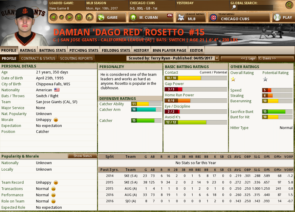 Damien "Dago Red" Rosetto, A San Jose (Giants High A)