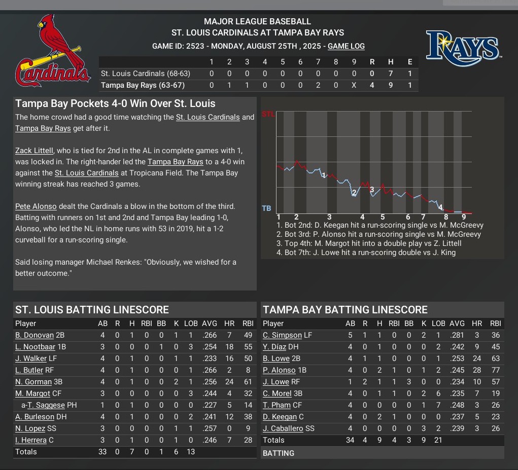 Cards news: August 25 -- Tampa Bay Ray 4, St. Louis Cardinals 0