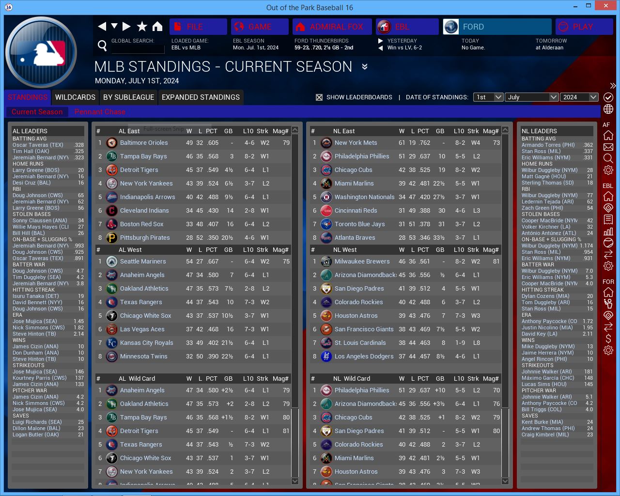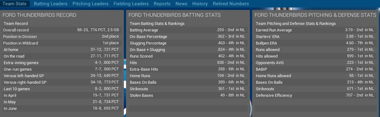 Good month overall at 19-8. Some players hit much better while Brett struggled a bit. Waters & Walker dominated, but Bainbridge & Michaels struggled at times. Dumas is a rookie and is about where I predicted him to be. Our pen is doing much better overall.