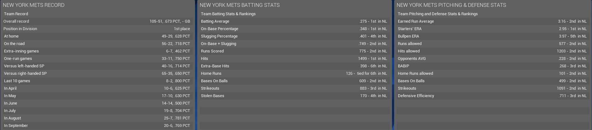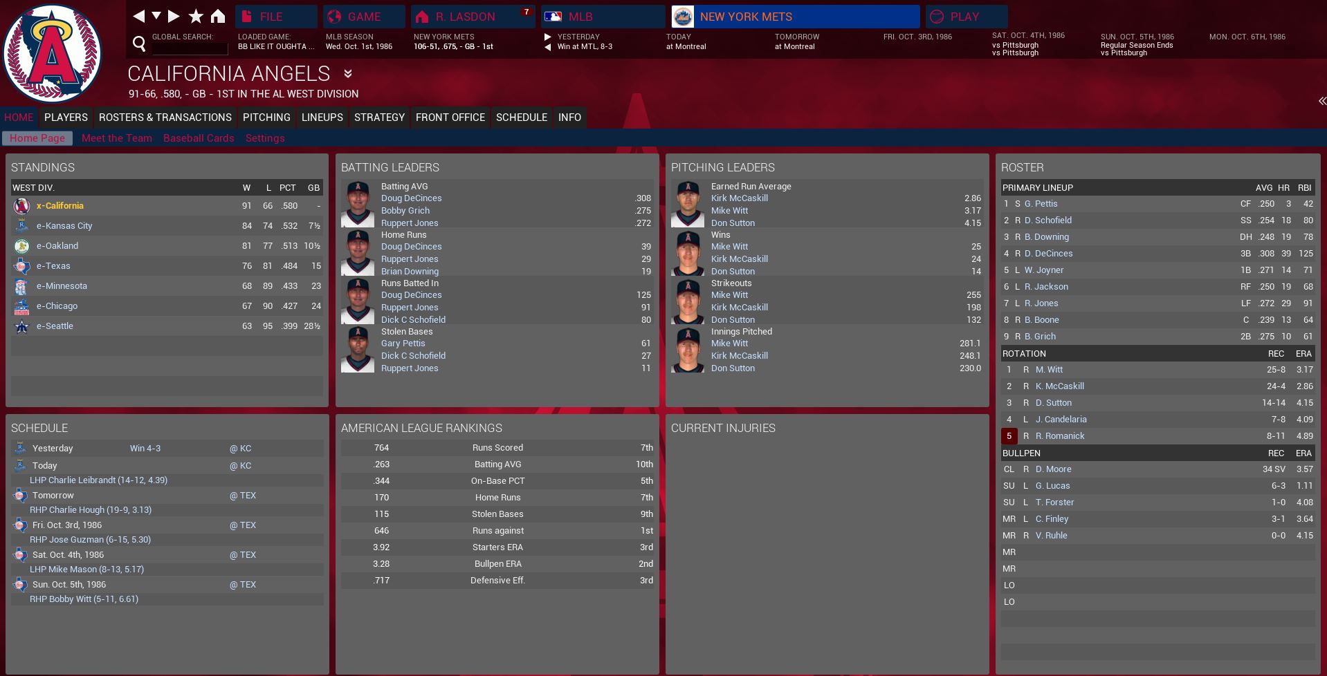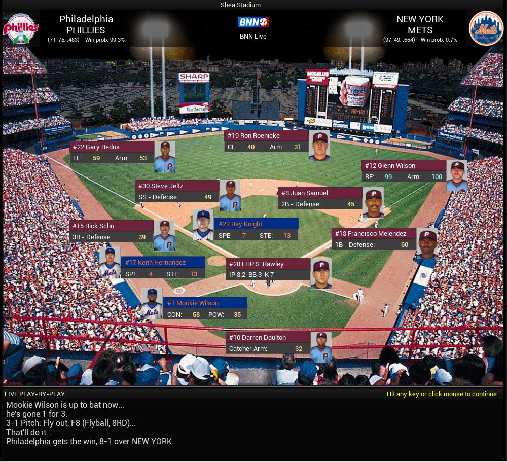 The 86 Mets were always a team of destiny in my mind. I get the same feeling watching you manage them from beginning to end. It looks like you're well on your way to duplicating the Mets feet of a World Championship. Lets go Mets!
