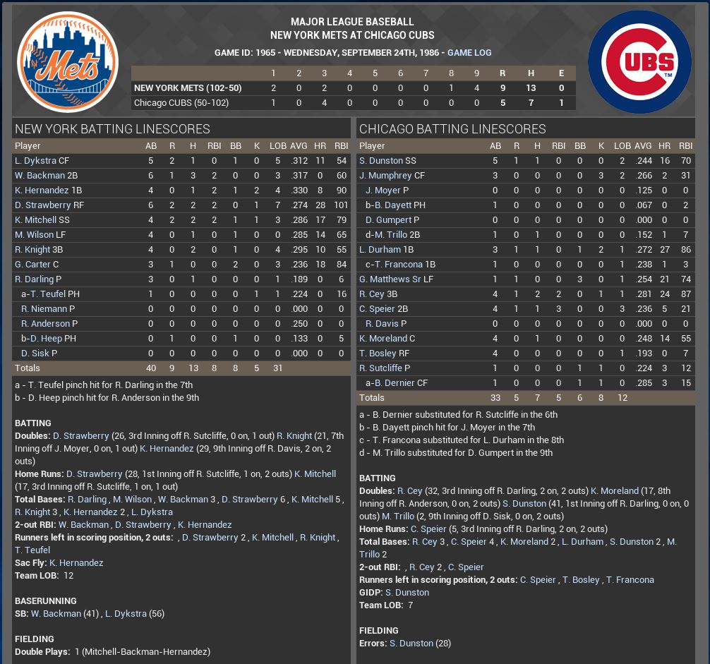 With the NL East championship already clinched, the 1986 NY Mets are just coasting along and waiting for the NLCS to start against the HOU Astros.