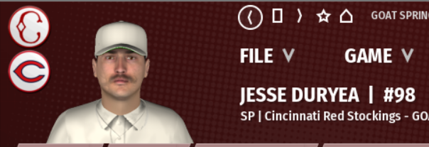 Thomas was a huge man for his era, standing 6 feet 4 inches and weighing around 200 pounds. His physical stature and ability to throw hard attracted attention from professional scouts. He had a reputation as an extremely slow worker and was known for his lack of control (he picked up the nickname “Savage Tom” and “the man killer” due to wildness resulting in many hit batsmen). That, and poor fundamentals such as fielding bunts and holding runners, prevented a longer career in the majors. - SABR Redid the facegen. He's a bit pale from the source photo but not too pale, I think. Tom and a bunch of the players that follow are all part of my organization in my Random Debut league so I'm still using that to select random players to look at... |