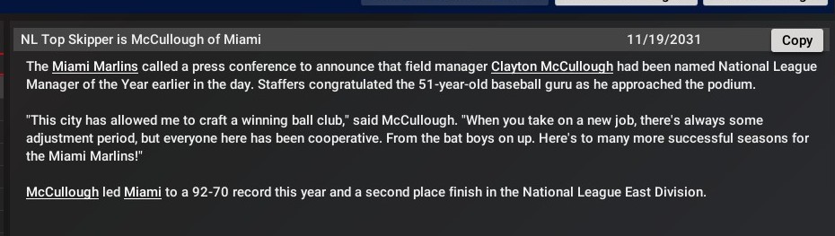 MLB news: Oct. 30 -- World Series Game 2 - Miami 7, Detroit 0, Series tied 1-1