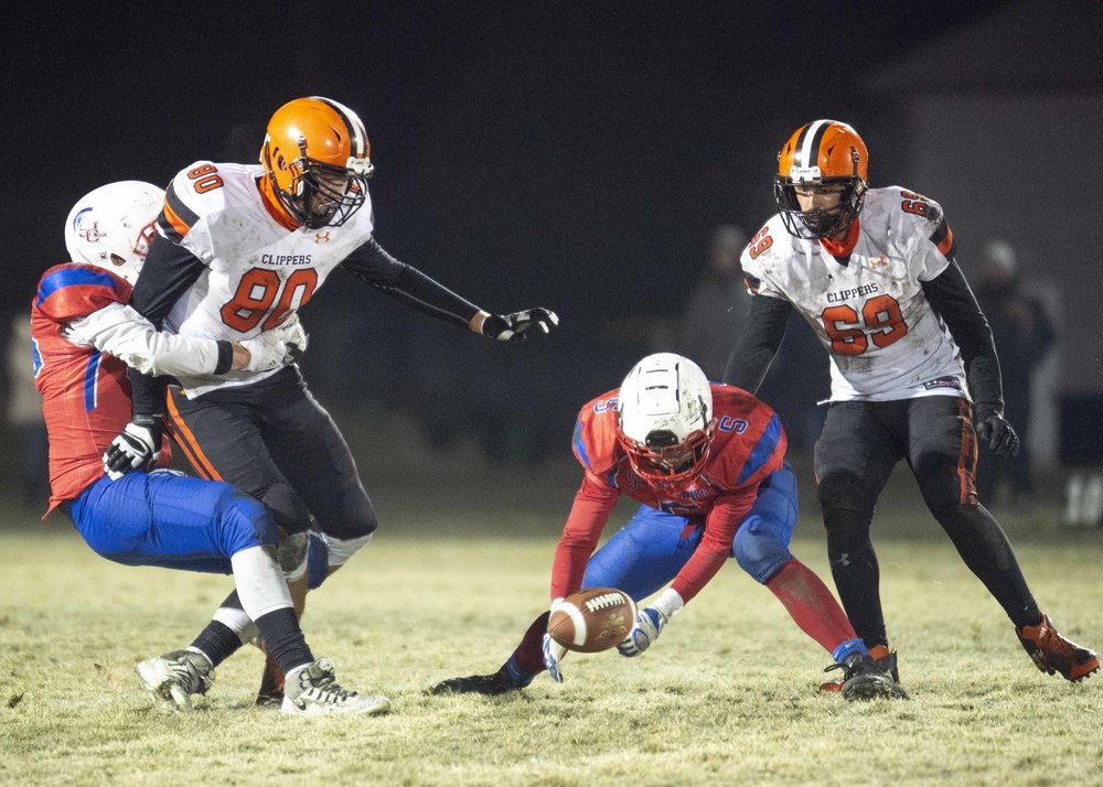 Ok, I found them. Cleveland, MN Clippers. You can't deny that the Cleveland Clippers and Cleveland Browns uniforms are very similar. The Clippers' orange looks like it might be a little bit lighter (although that might be due to the shading of the helmets in the photo), and the pants are darker.