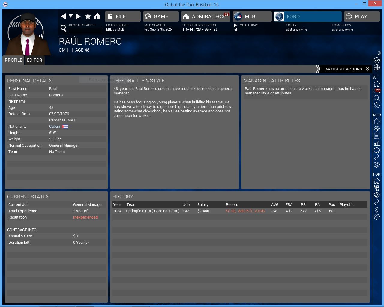 Lombard Falcons MGR Ozzie Timmons was fired. Ford placed RP Fyodor Chekmasov on waivers. He was claimed by Hope Chimera. Texas will miss LF Oscar Tavares for the rest of the season.