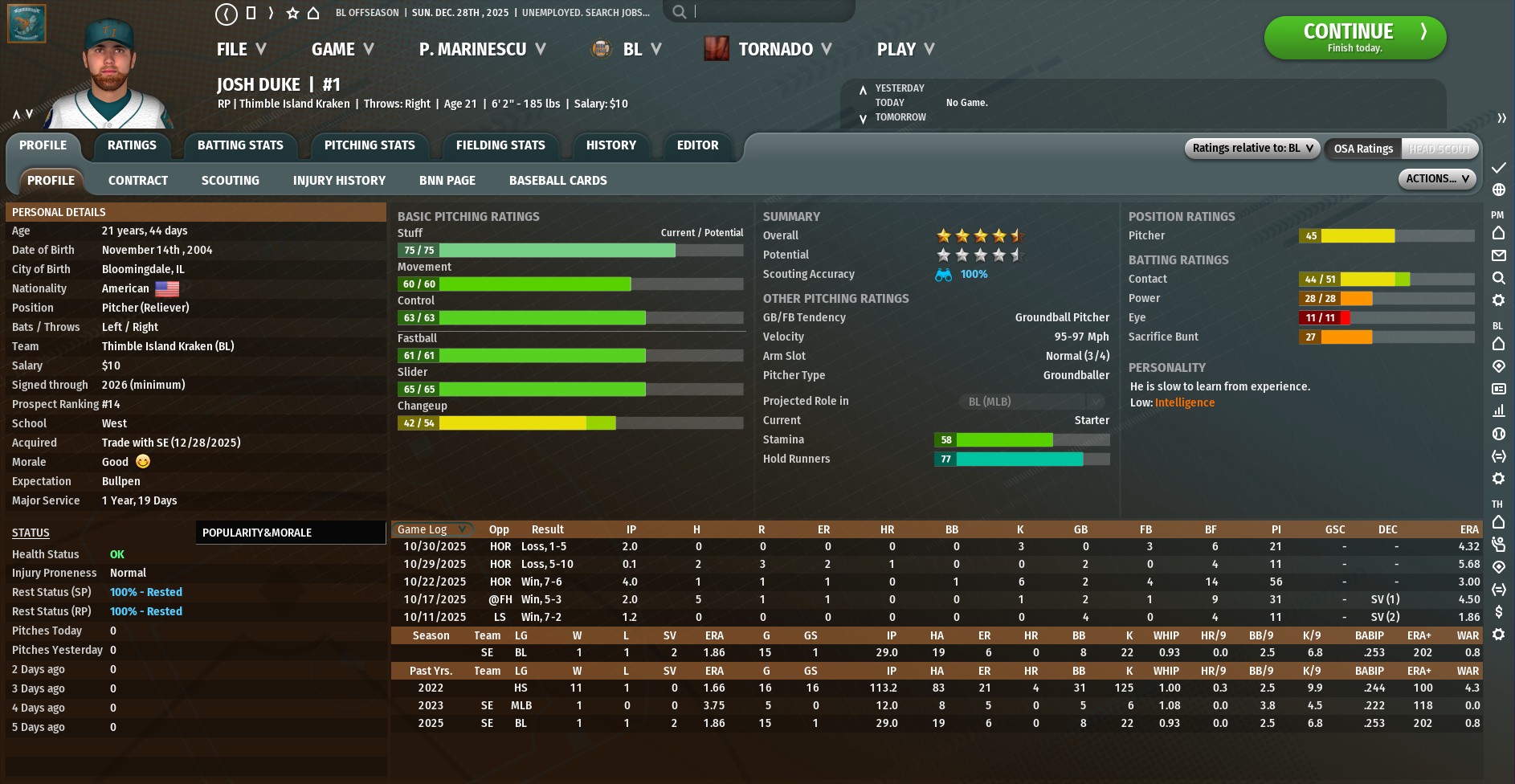 Scorched Earth Giant Killer have sent starter Michael Zamora, reliever Josh Duke and a 5th round draft pick to Thimble Island Kraken in exchange for right fielder John Jessie