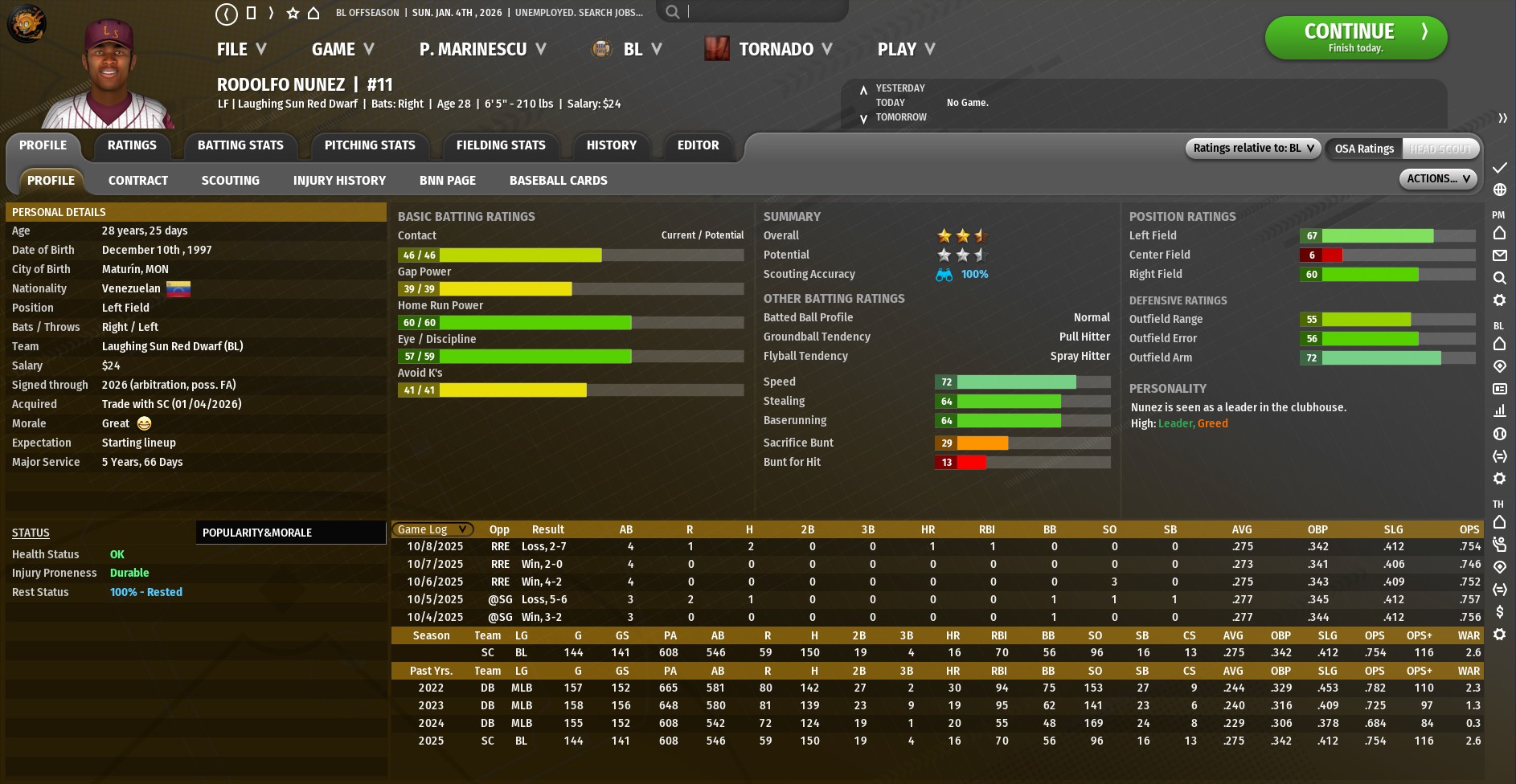 Stony Creek Crankenstein have traded left fielder Rodolfo Nunez and center fielder Bobby Sutton to Laughing Sun Red Dwarf in exchange for reliever Justin Liotta and first baseman Avery Woods